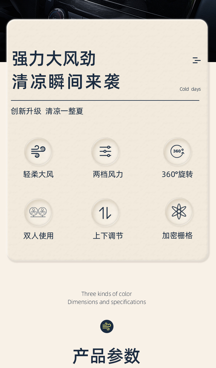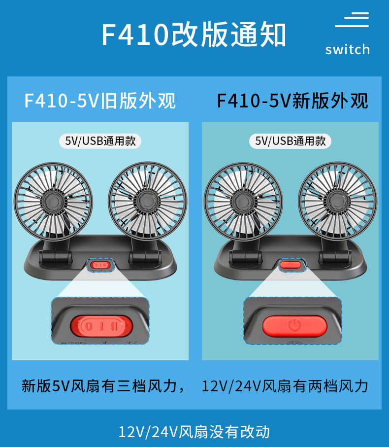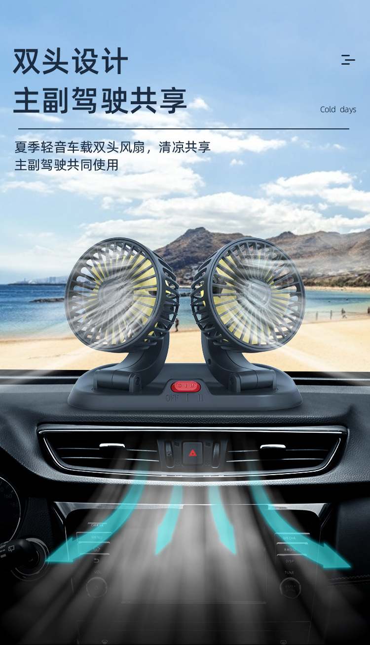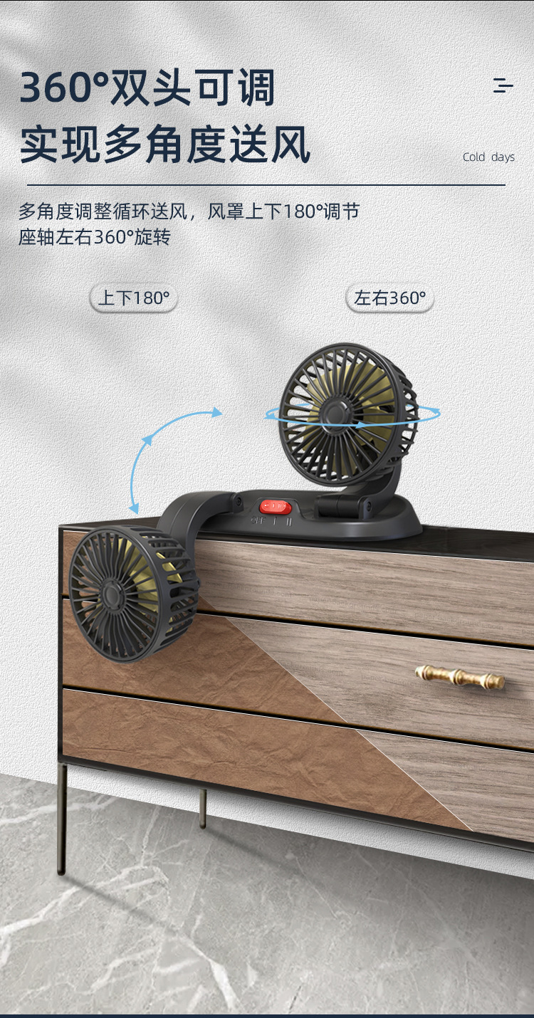 【风扇停车牌二合一】润东 车载双头风扇 轿车货车可用 12V/24V/USB可选