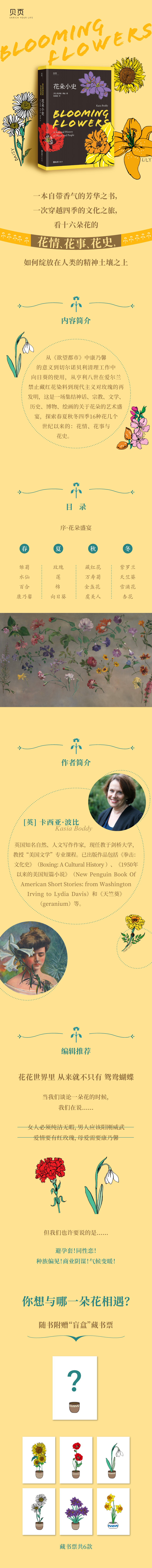 从《欲望都市》中康乃馨的意义到切尔诺贝利清理工作中向日葵的使用,从亨利八世在爱尔兰禁止藏红花染料到现代主义对玫瑰的再发明,这是一场集结神话、宗教、文学、历史、博物、绘画的关于花朵的艺术盛宴,探索春夏秋冬四季16种花几个世纪以来的:花情、花事与花史。作者以长长的“花茎”般的思维触角,穿越古希腊神话、维多利亚园艺时代、中世纪、文艺复兴时期花卉艺术到近现代园林小径,探索四季16种花在人类文明中的崛起与衰败;传情与表意;演绎与更迭。