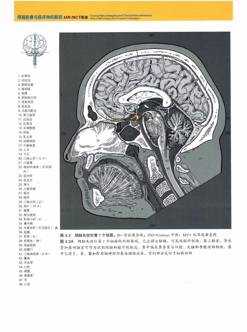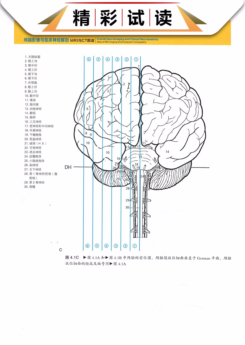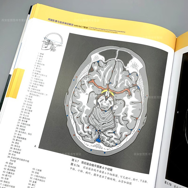 采用与临床上的CT检查相一致的轴位角度进行大脑切片,并对切面中的解剖结构序号进行标准化处理,读者学习和记忆时可以毫不费力。