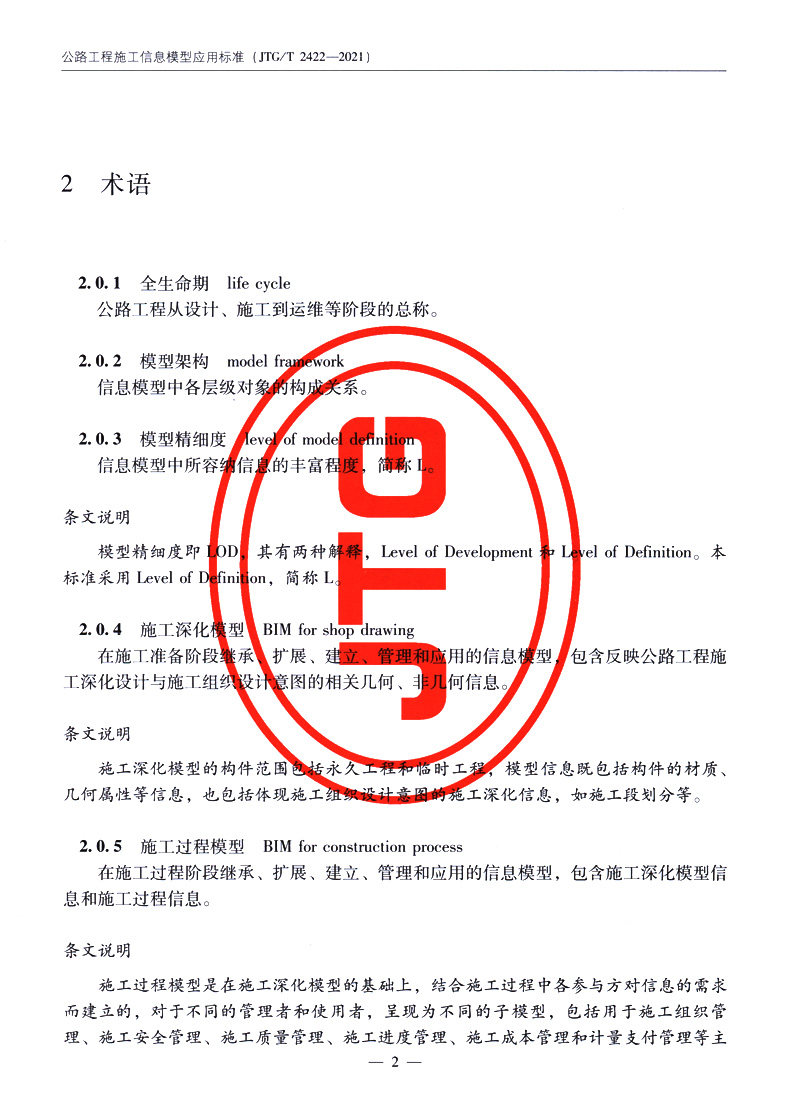 JTG/T 2422-2021 公路工程施工信息模型应用标准