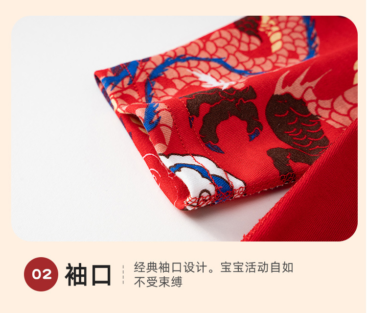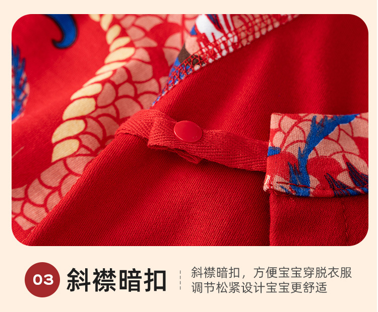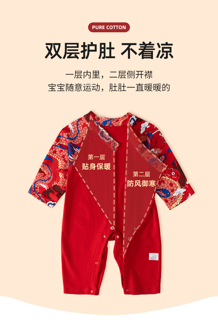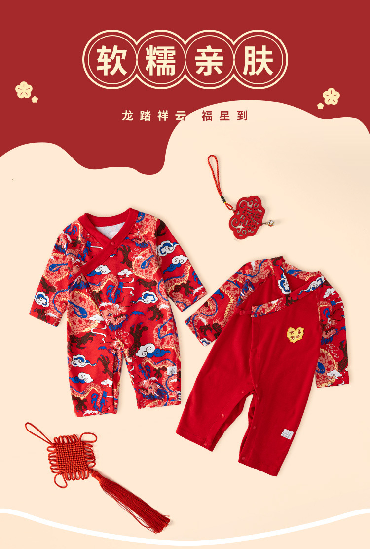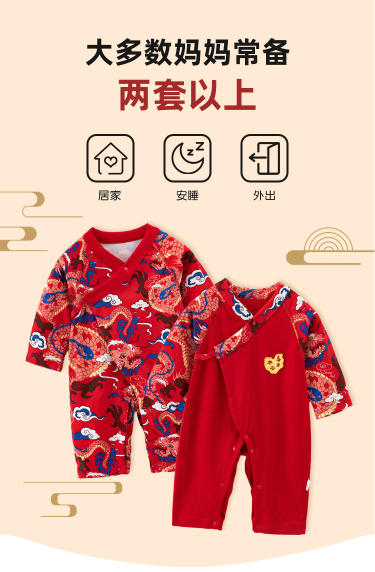 【龙踏祥云拜年服】婴儿衣服连体衣a类纯棉拜年红色婴儿服满月宝宝周岁新生衣 服龙年