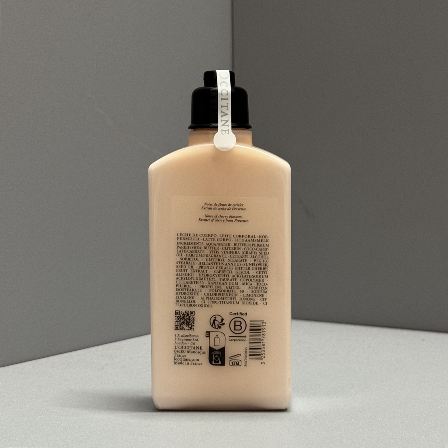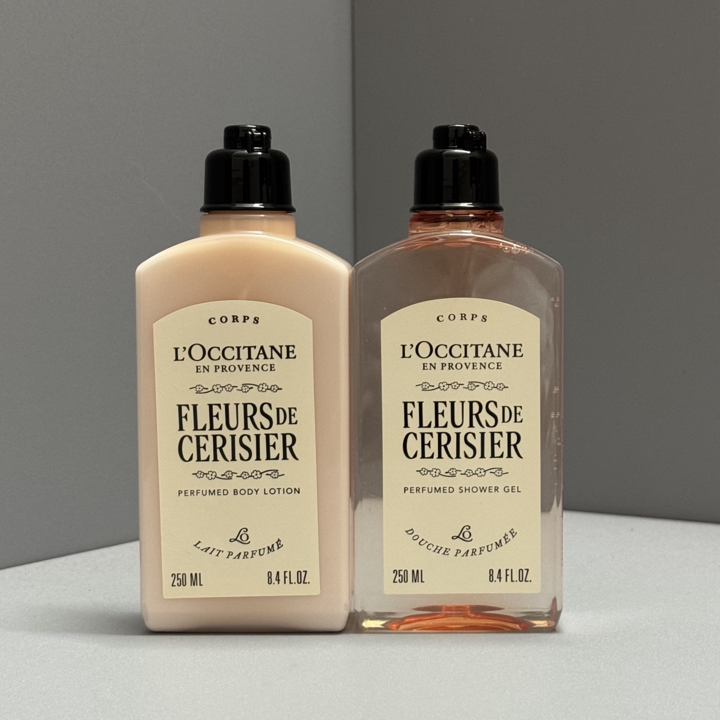 新版欧舒丹樱花身体乳/沐浴露🔜📸2068145可配中文标✔️单支价❗️樱花与樱桃和谐交织的清新香调,前调是樱桃和小苍兰,中调是樱花和铃兰,后调是花梨木和琥珀。双重滋养配方,深层清洁,持久留香。适合男女使用,滋润保湿效果好。