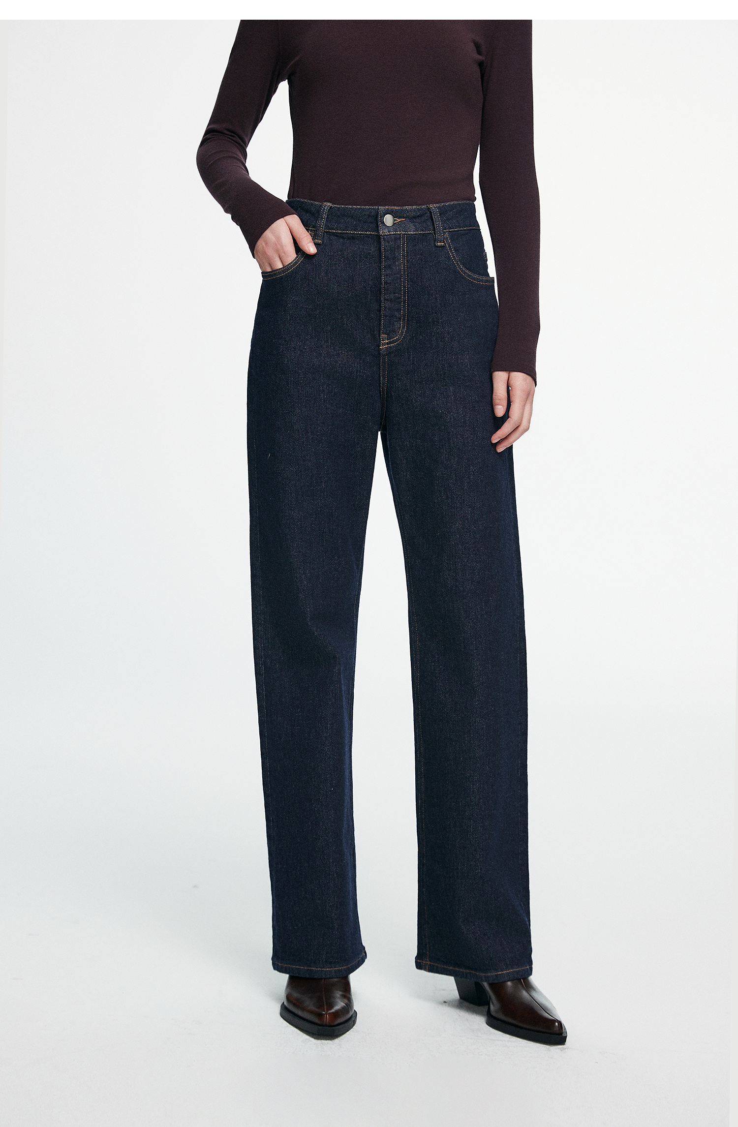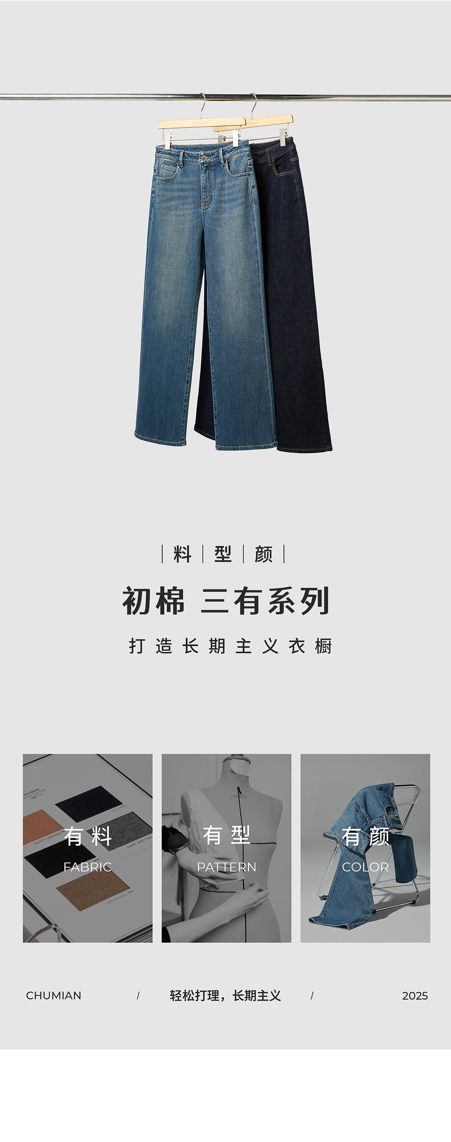 棉仓366619005-【三有超模裤】重磅水洗经典蓝直筒牛仔裤女25秋新品弹力显瘦长裤