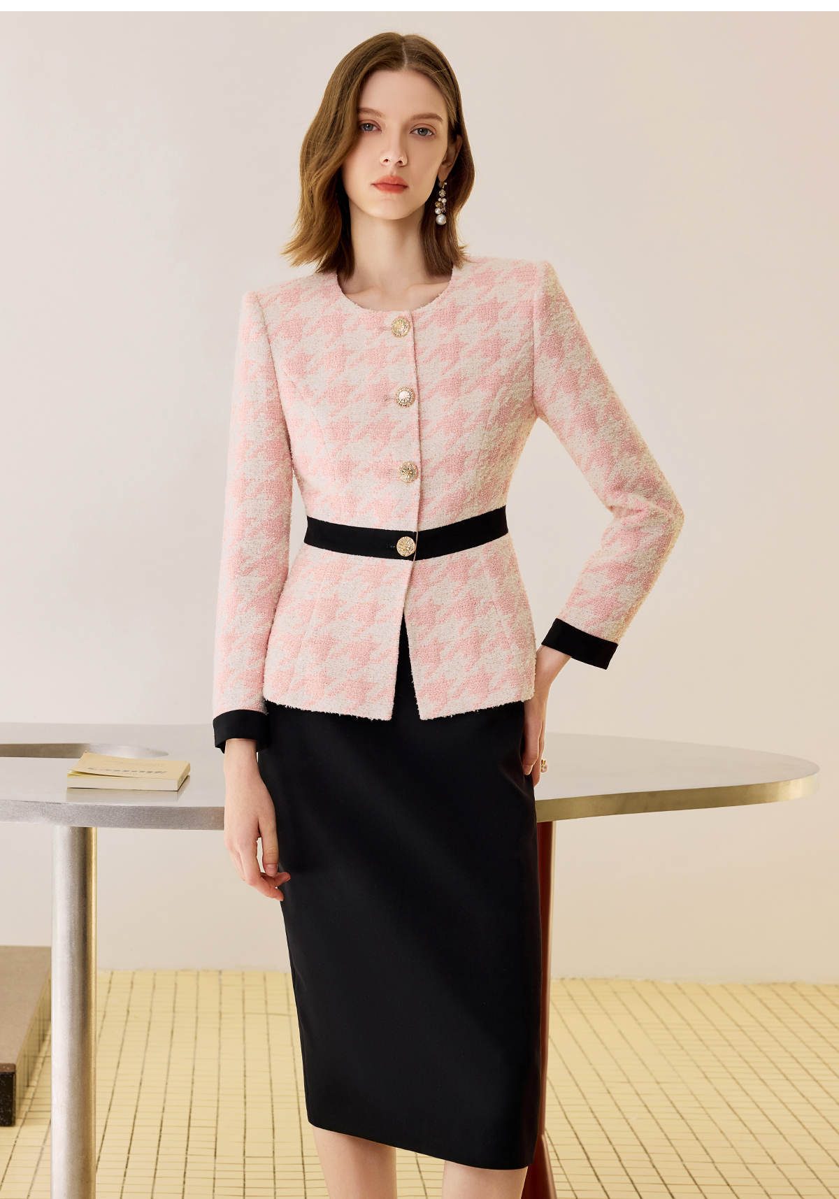 艾尚臣千鸟格小香风外套女2025新款秋高级感气质名媛西装上衣法式