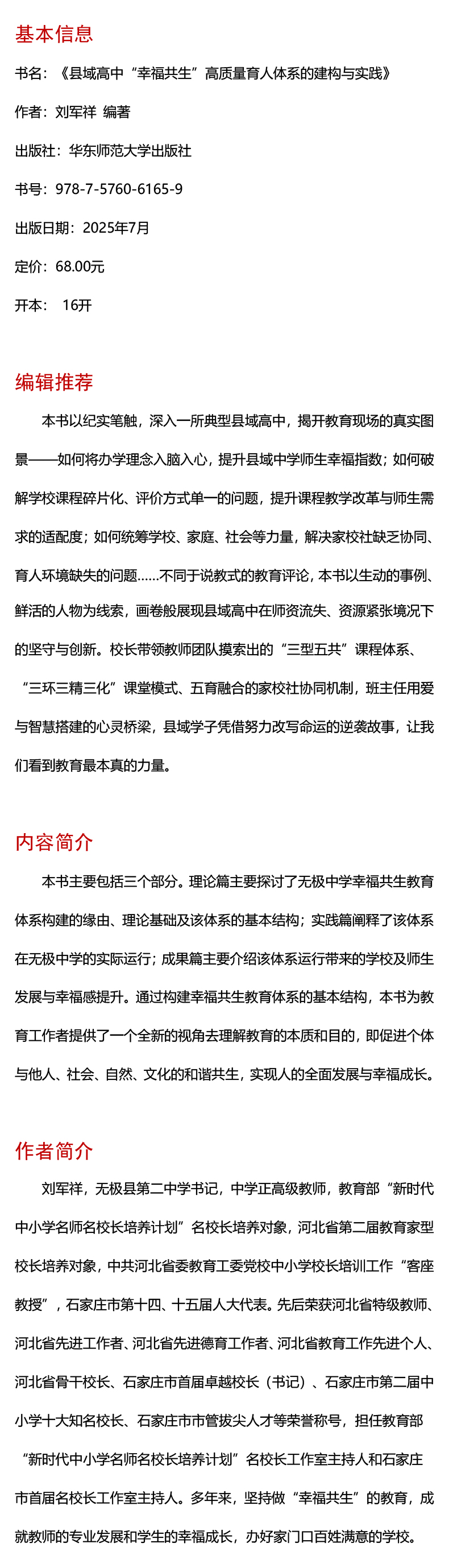 县域高中“幸福共生”高质量育人体系的建构与实践 刘军祥 县中发展