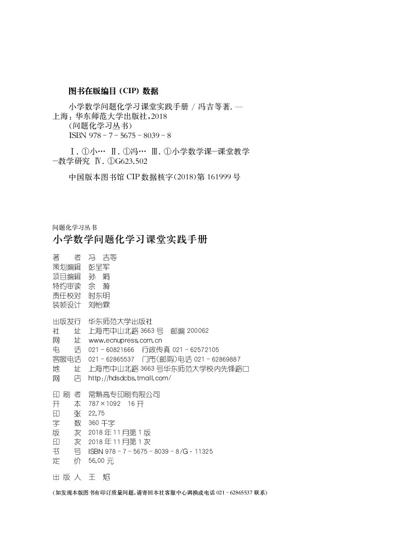 小学数学问题化学习课堂实践手册 问题化学习丛书 小学数学教师
