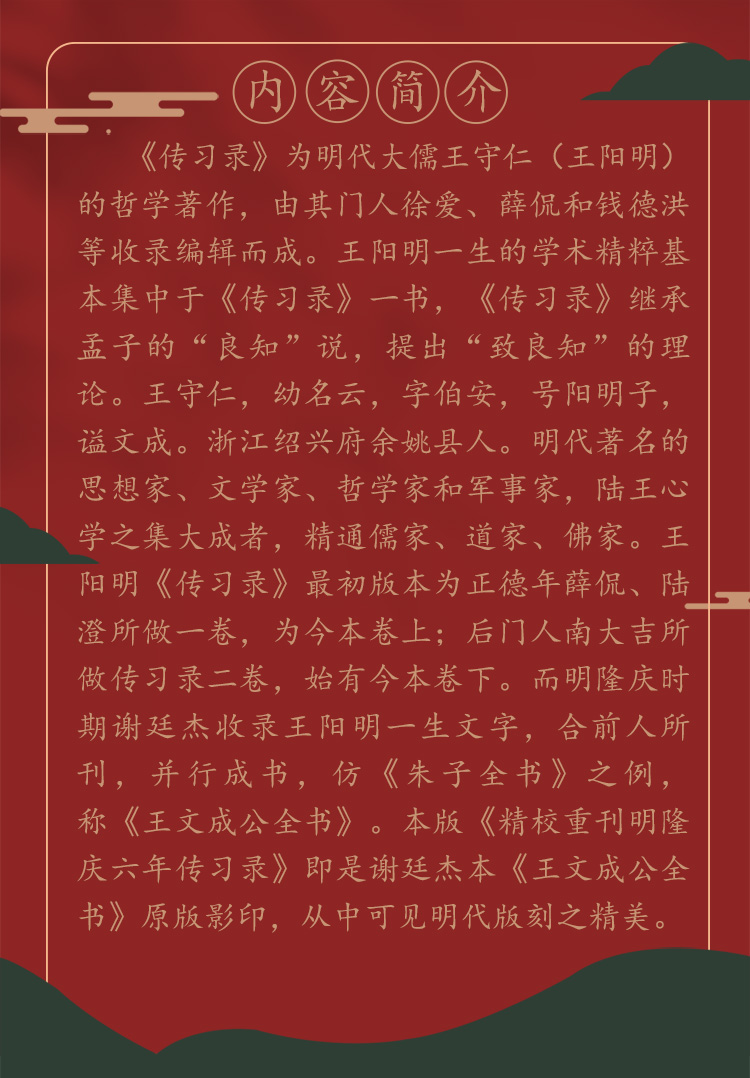 崇贤善本系列《精校重刊明隆庆六年传习录》(一函三册)