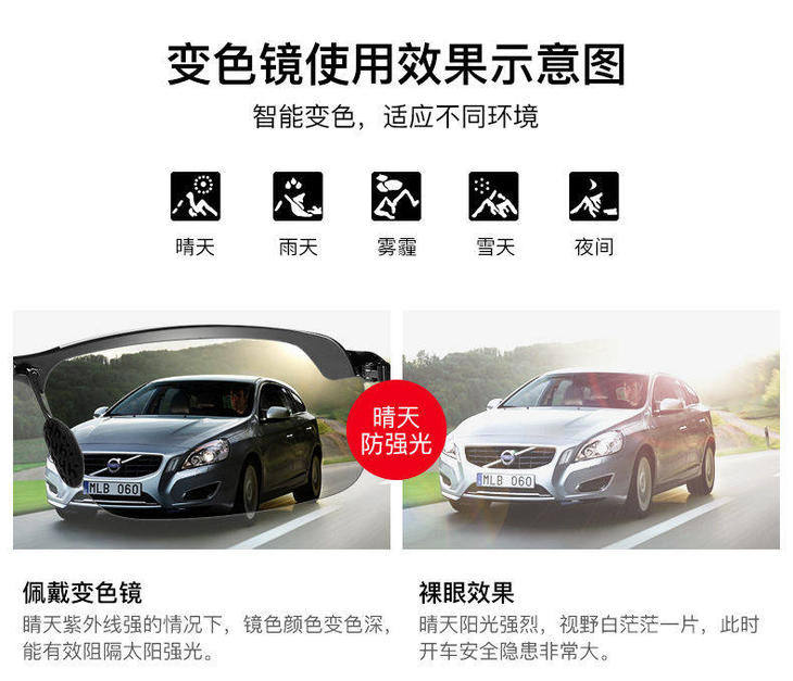 【智能变色 司机专用墨镜】日夜两用变色太阳眼镜 偏光司机开车专用