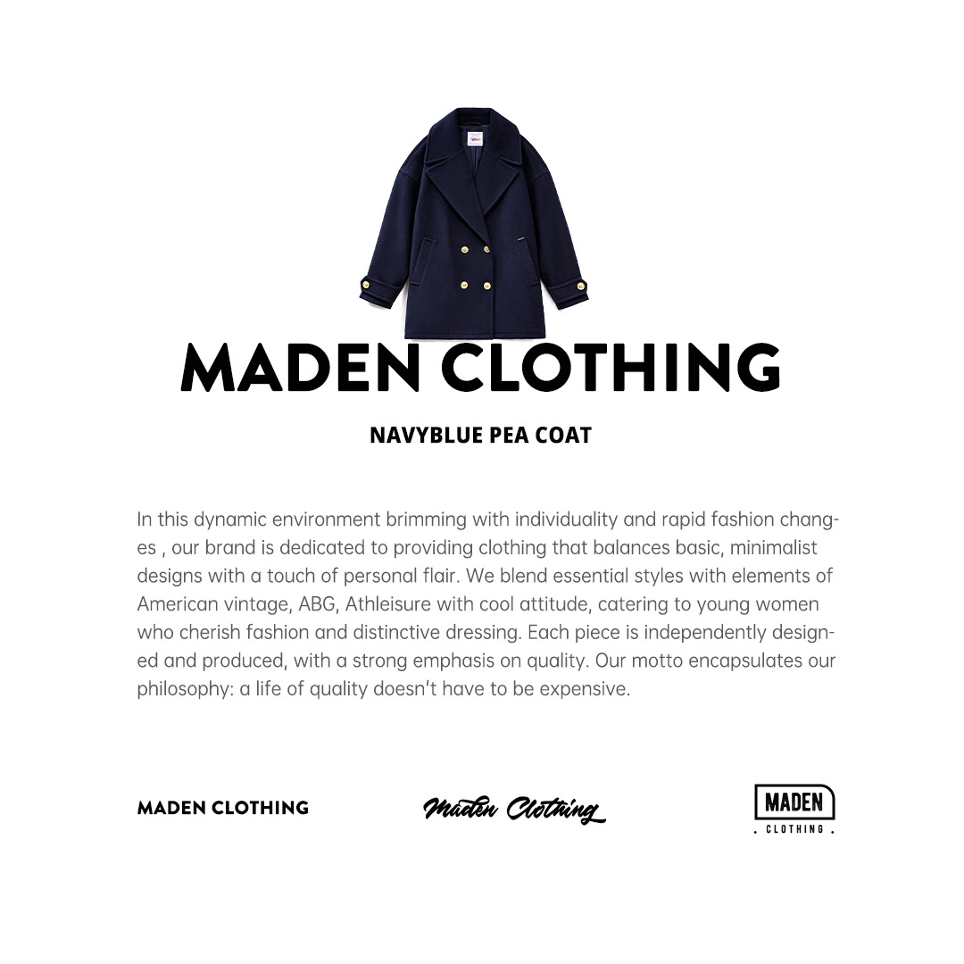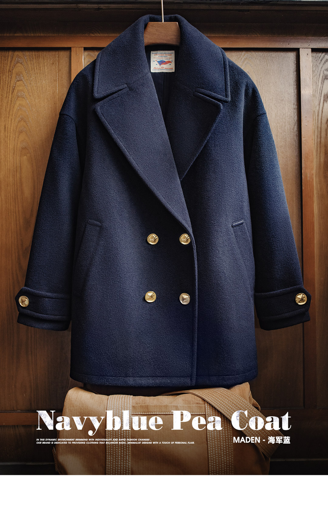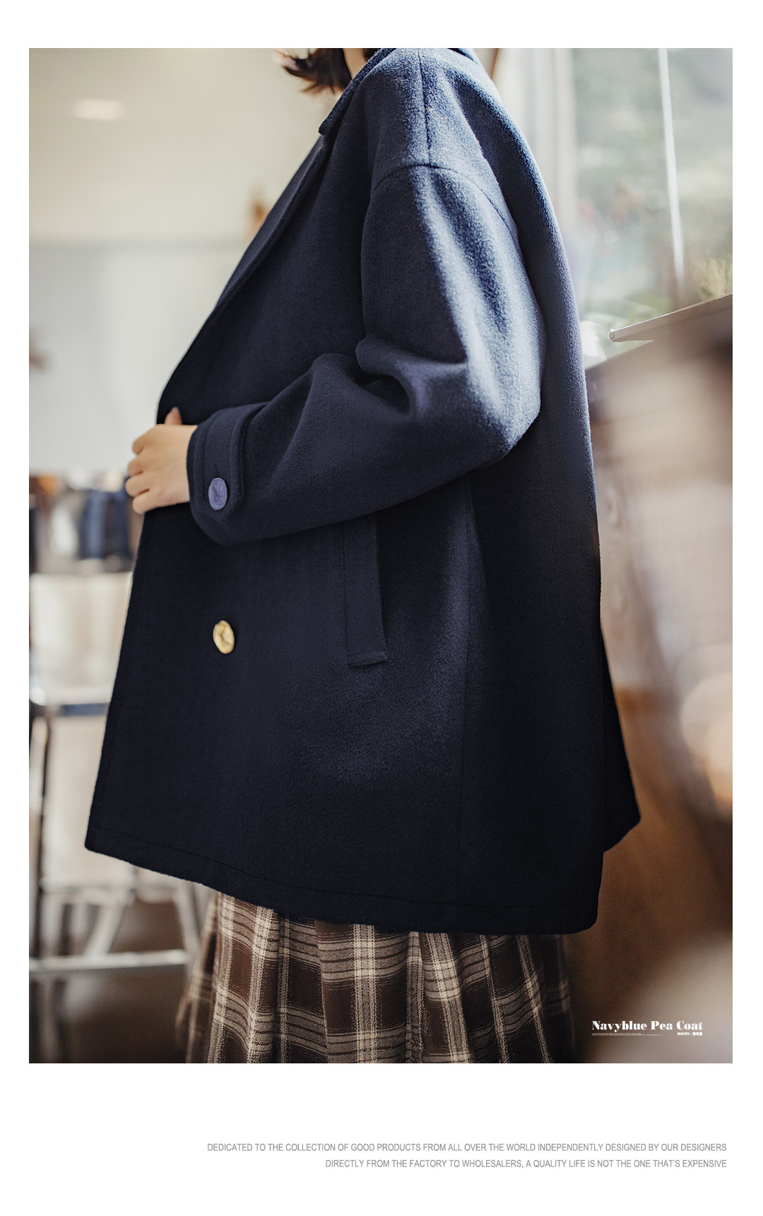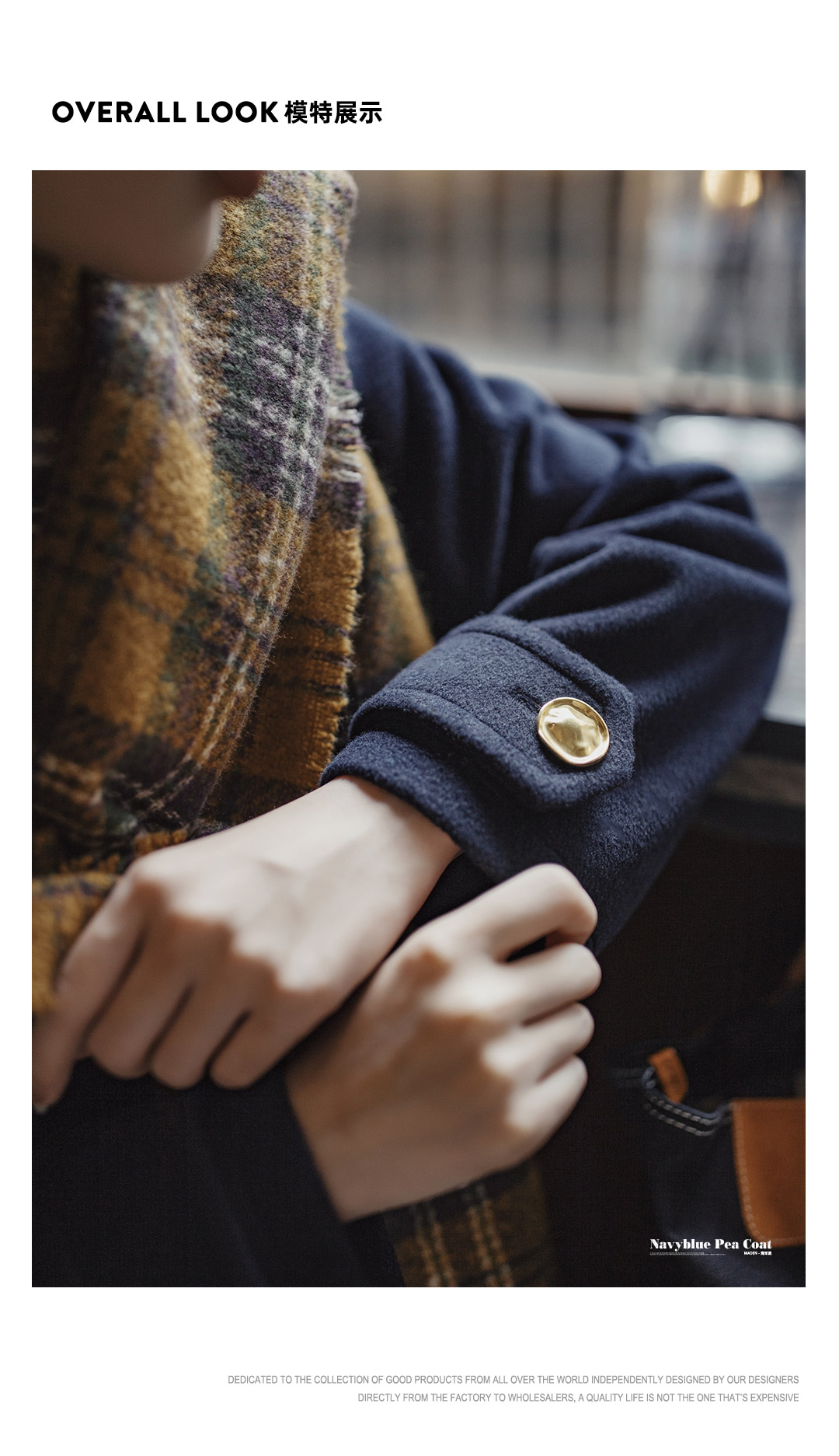 马登蓝色复古中长款绒面外套加厚保暖重磅双排扣毛呢子大衣女士秋