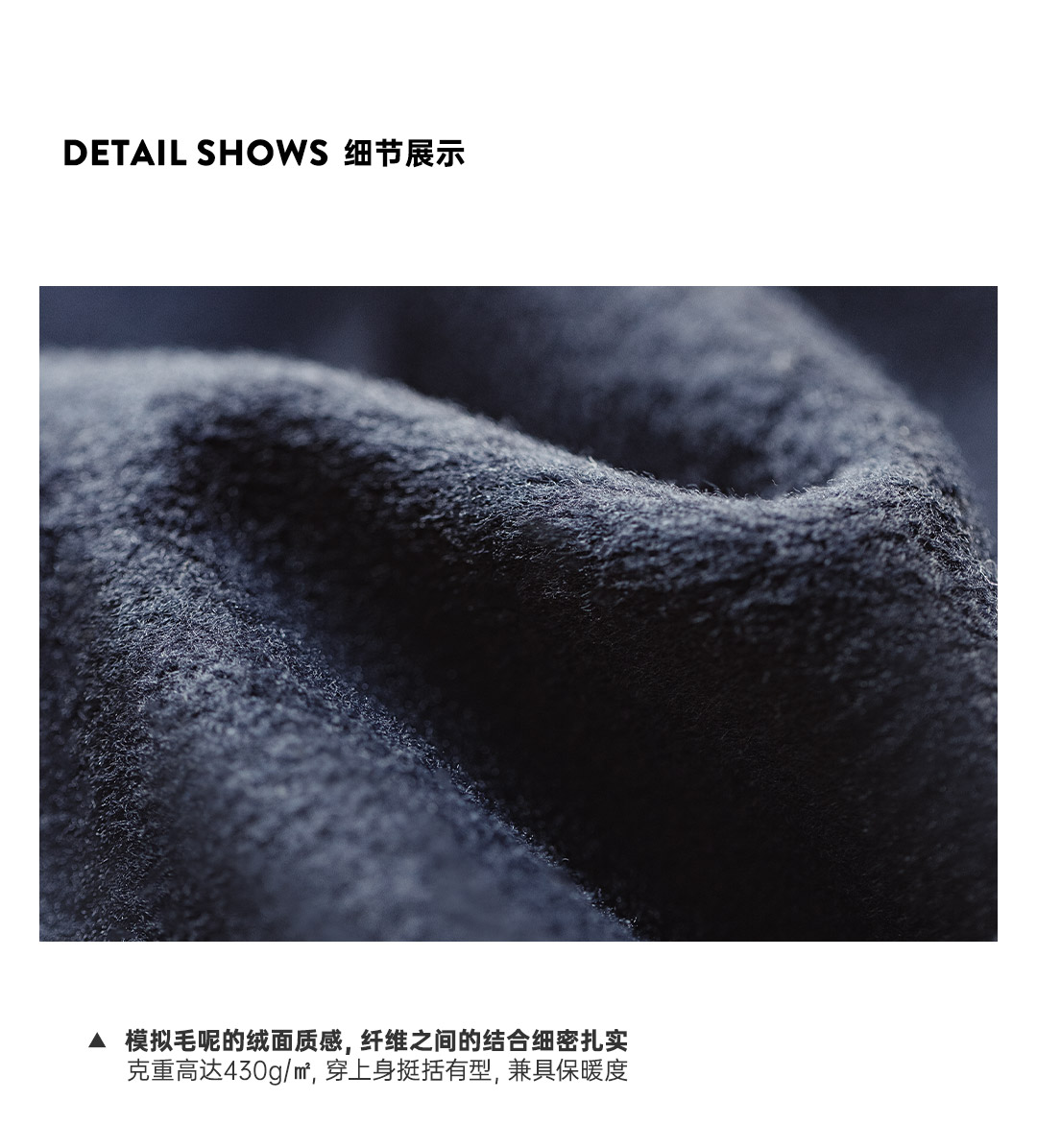 工装优选美式复古重磅毛呢卫衣宽松保暖拼接口袋圆领上衣男秋冬季