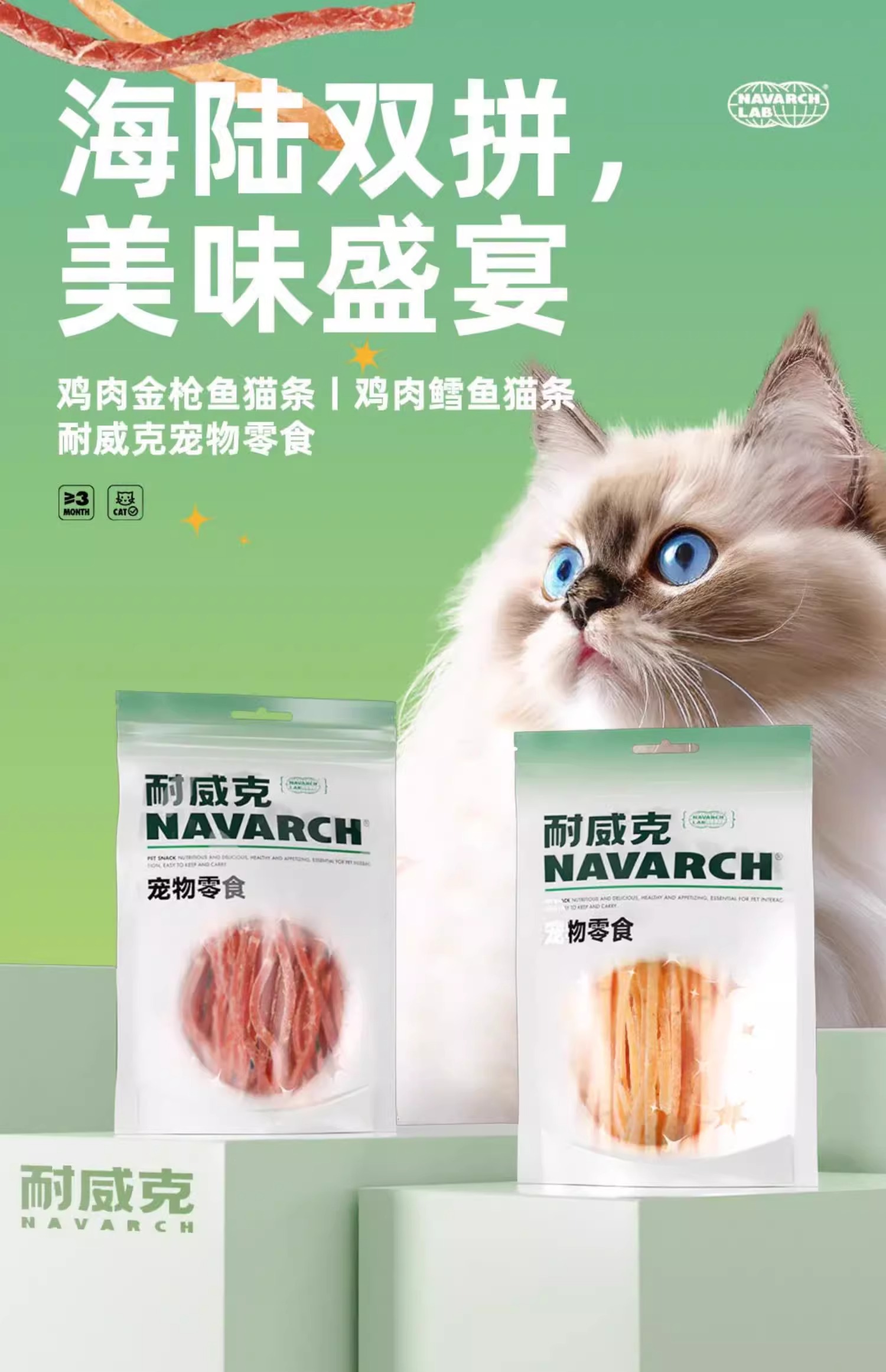 耐威克|猫咪肉条| 猫咪零食|海陆双拼|美味盛宴|猫咪高冷,来一根|精选食材|美味碰撞