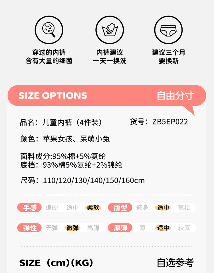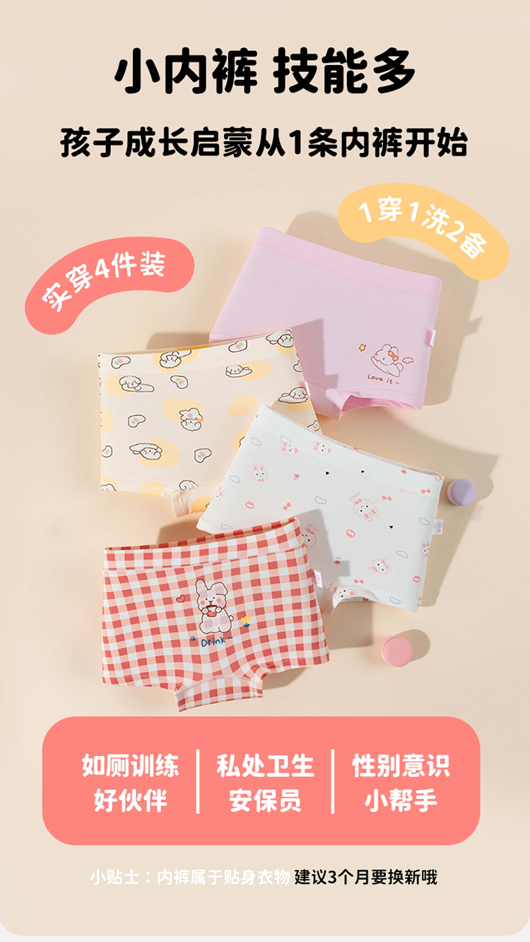 贝贝怡女童儿童内裤(4件装)ZB5EP022