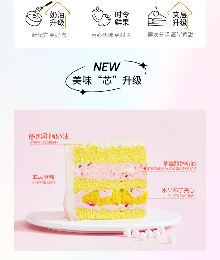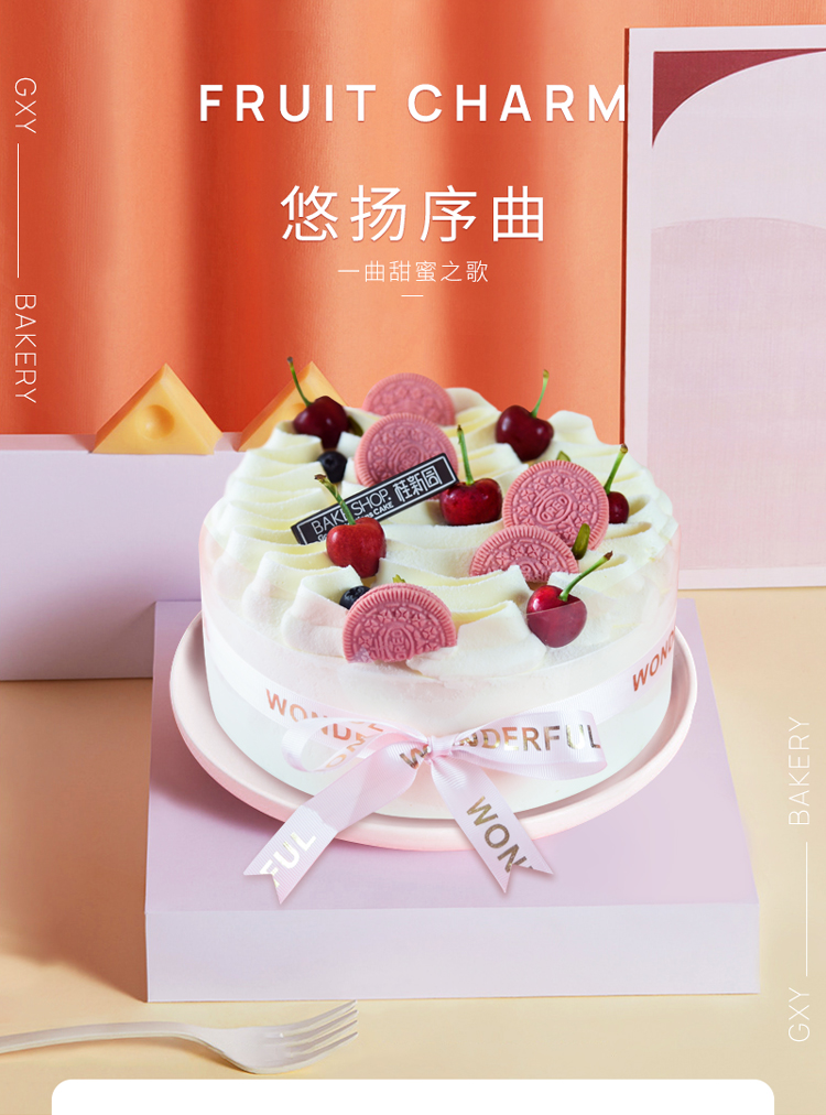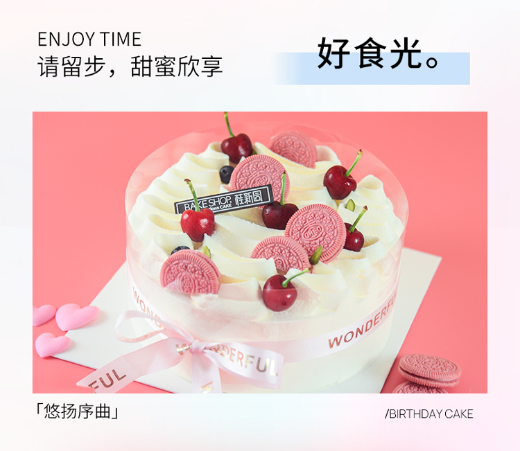 【悠扬序曲】 新款特色生日蛋糕—纯乳脂与牛奶奶油混合,夹层口味升级,细腻香甜