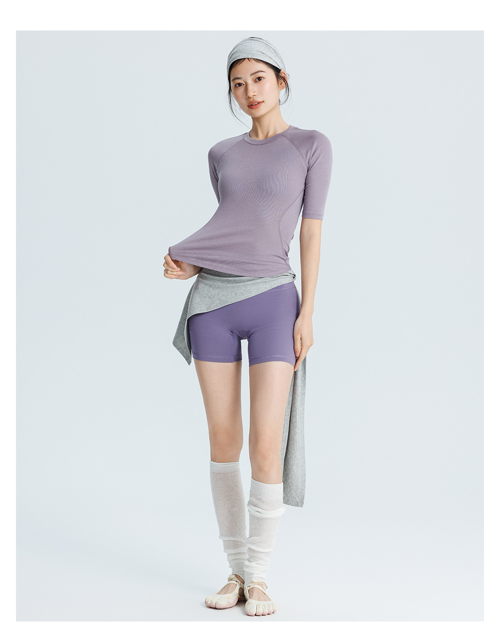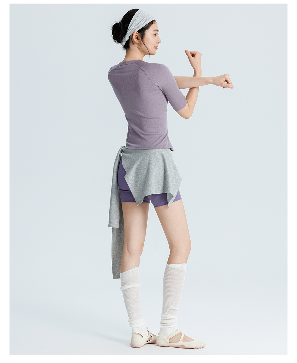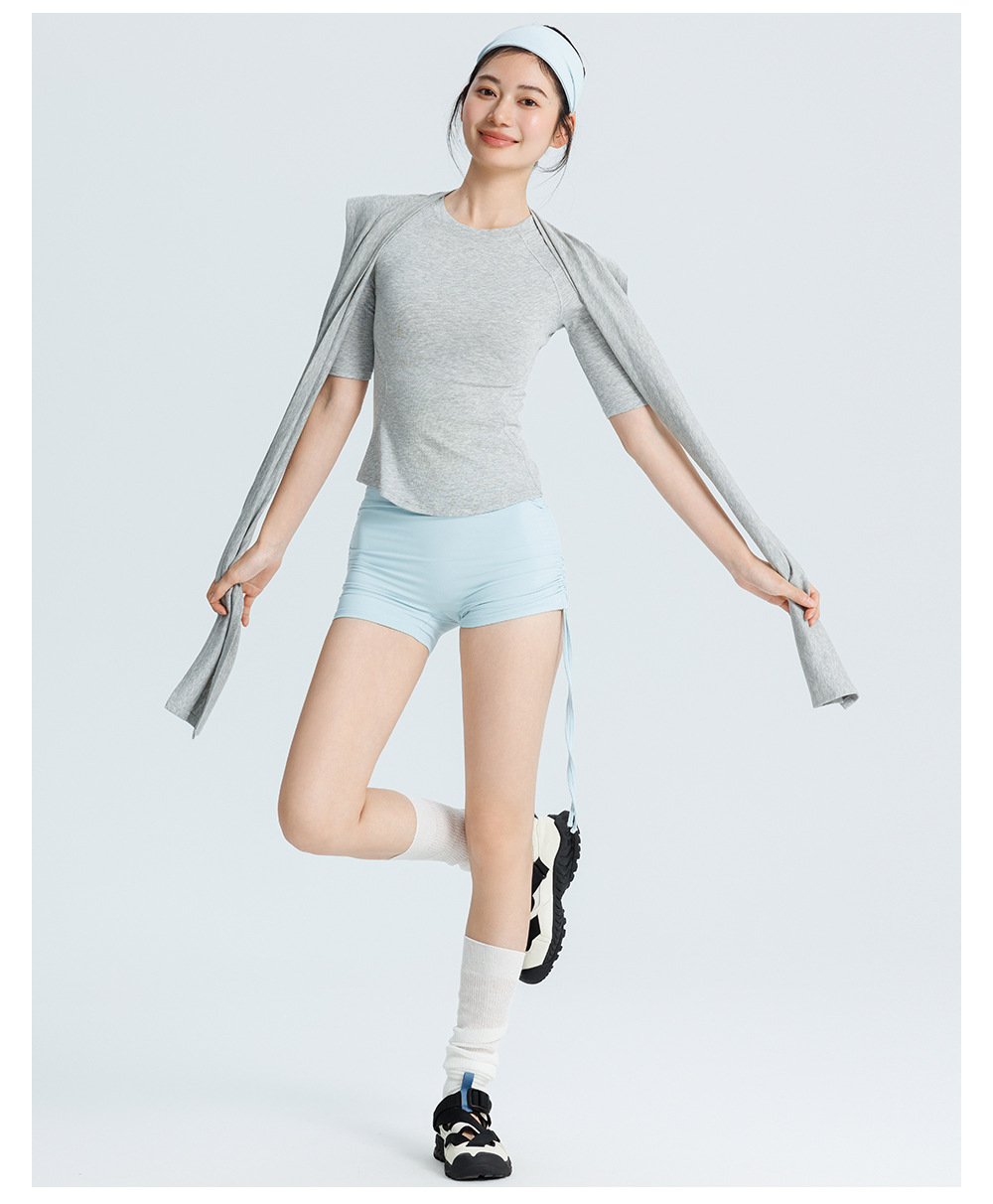 唤醒身心~ 曲线型拼接好显身材!春夏中袖T恤瑜伽服女 小圆领半袖修身短款健身运动普拉提上衣