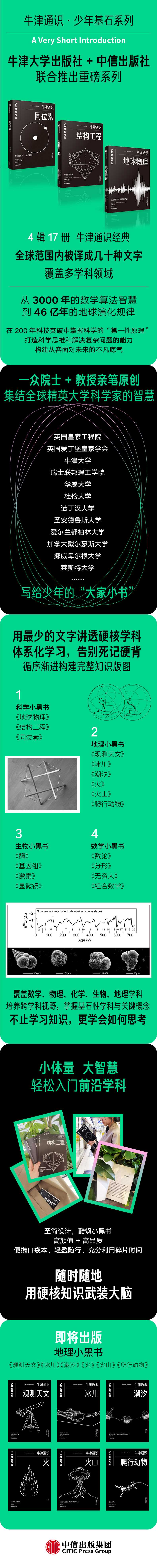 ※牛津大学出版社官方正版授权,牛津通识少年基石系列,百年通识经典牛津大学出版社是全球历史悠久、学术影响力较高的出版社,拥有数百年严谨出版传统与世界学术资源。本次专为青少年打造的;牛津通识少年基石系列,4辑17册牛津通识经典,全球范围内被译成几十种文字,覆盖多学科领域,是值得充分信赖的;青少年通识读物。从3000年的数学算法智慧,到46亿年的地球演化规律,在200年科技突破中掌握科学的;第一性原理,打造科学思维和解决复杂问题的能力,构建从容面对未来的不凡底气。