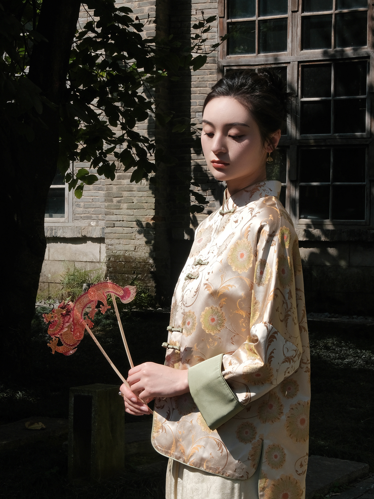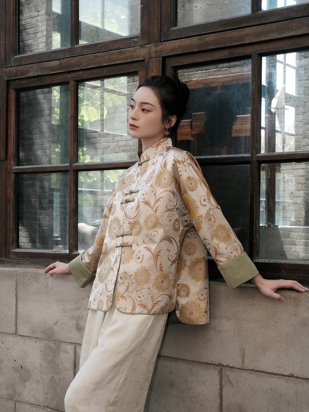 盛唐婧 |真丝宋锦折枝团花纹外套