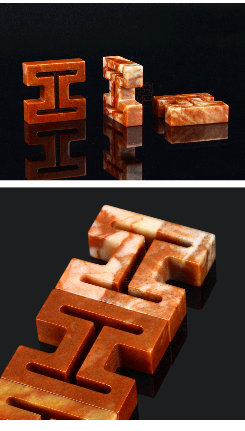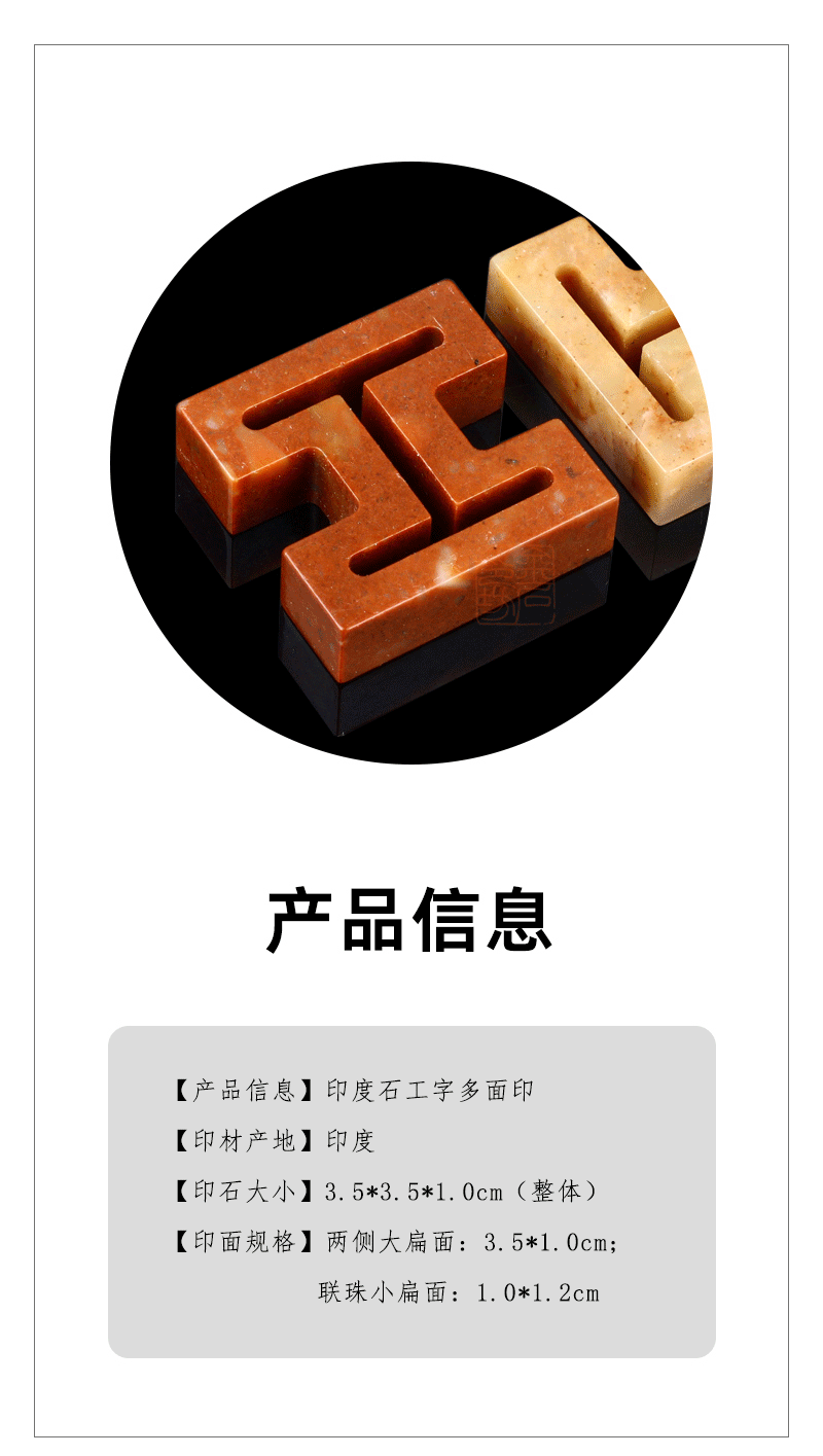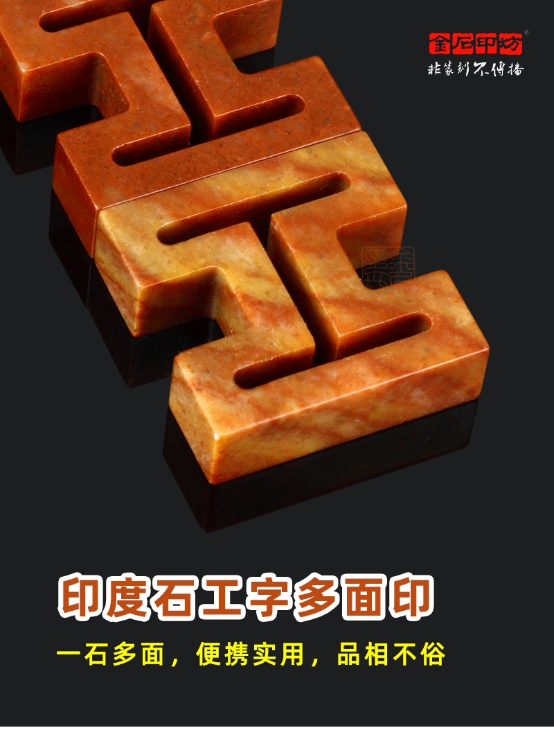 精磨印度石工字多面印 浙江红石 配麻布锦盒 金石印坊
