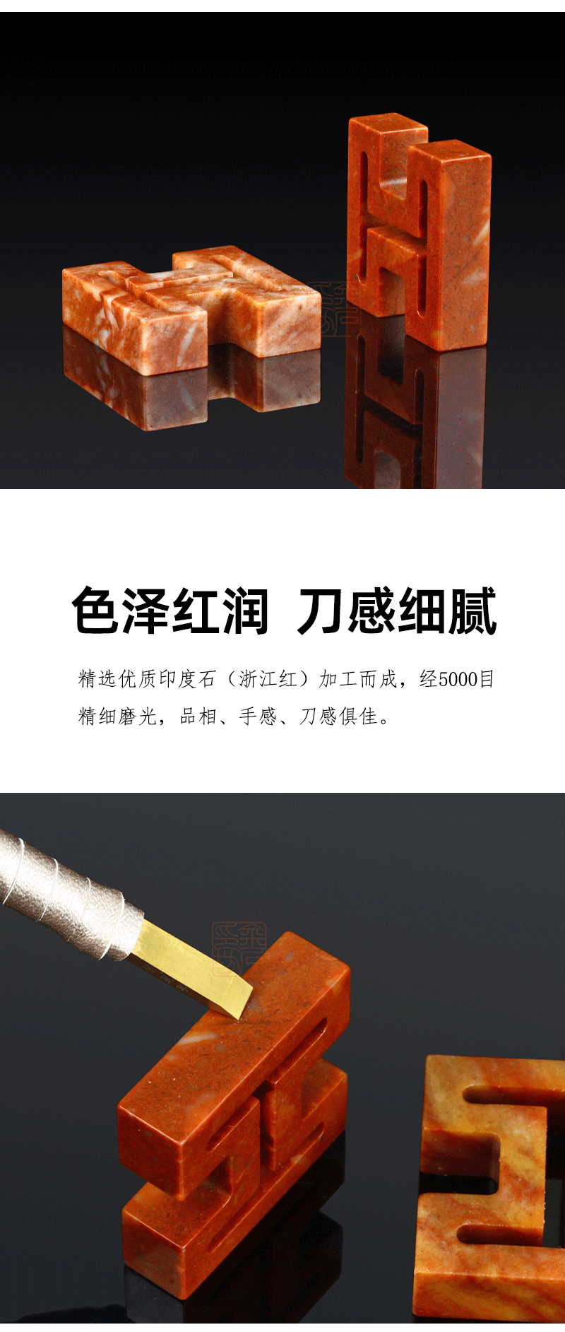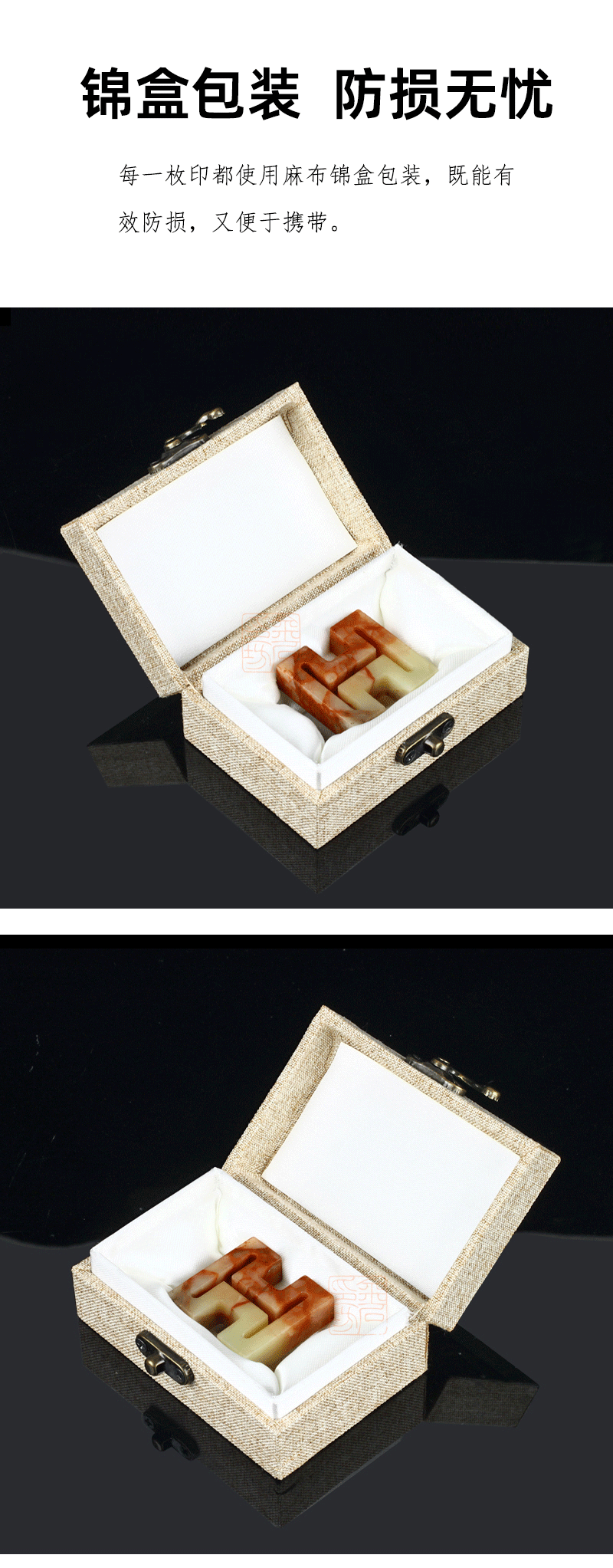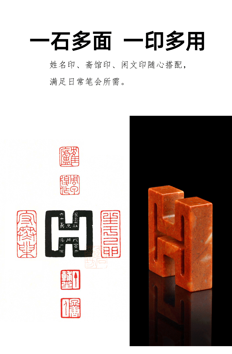 精磨印度石工字多面印 浙江红石 配麻布锦盒 金石印坊
