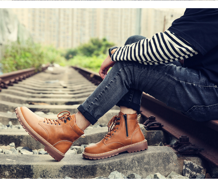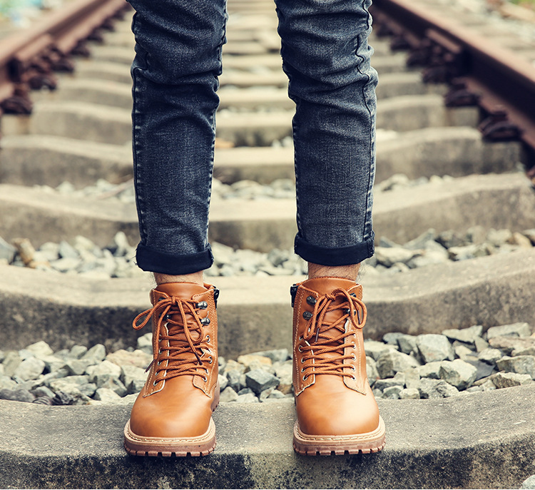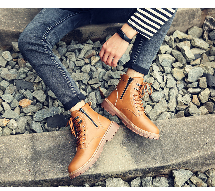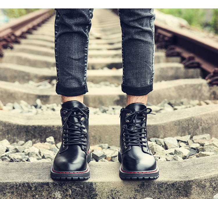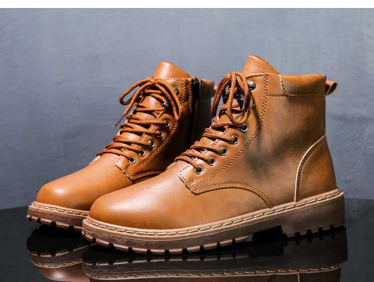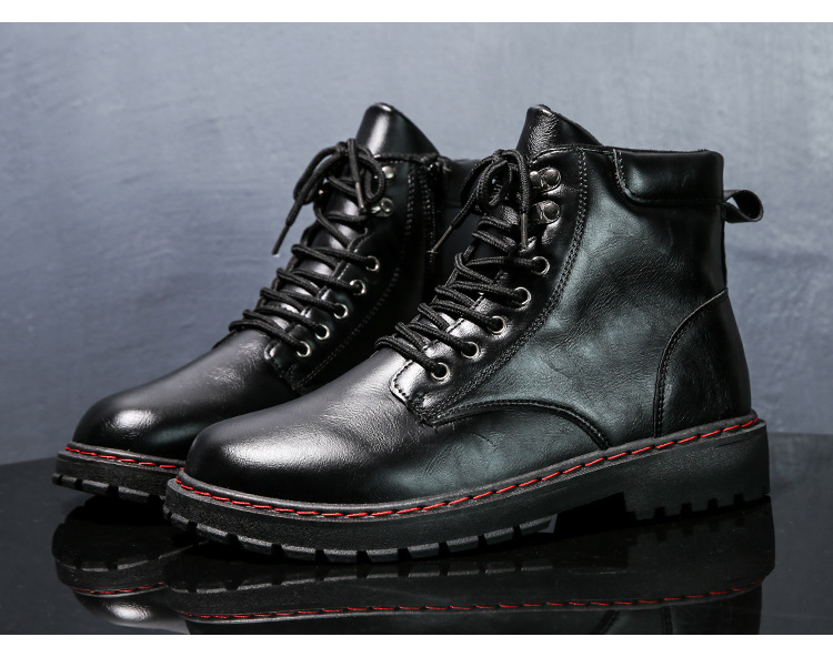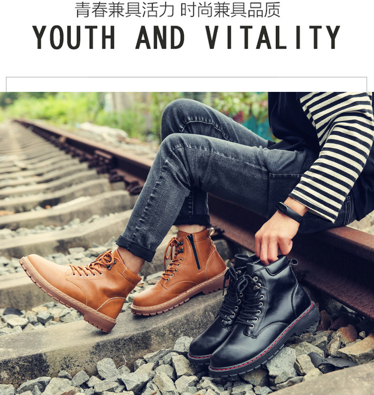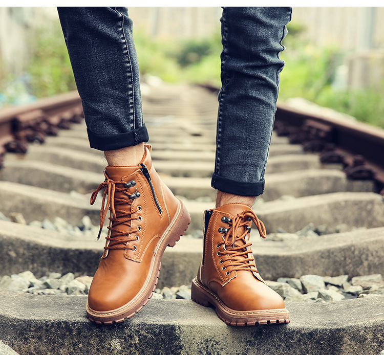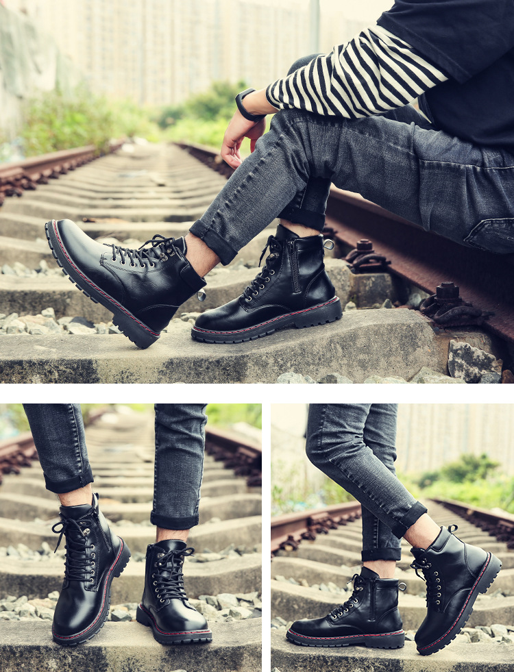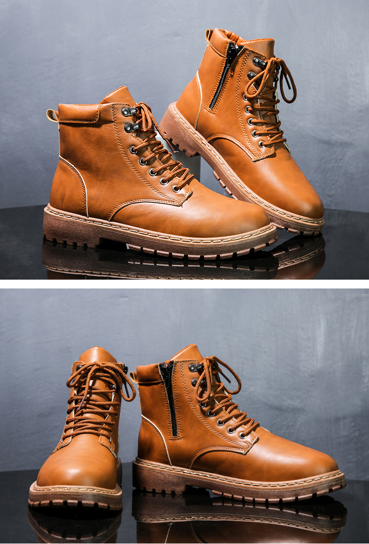 【服饰鞋包】男靴中筒系带工装靴PU马丁靴秋季爆款外贸男鞋靴子潮鞋39-44