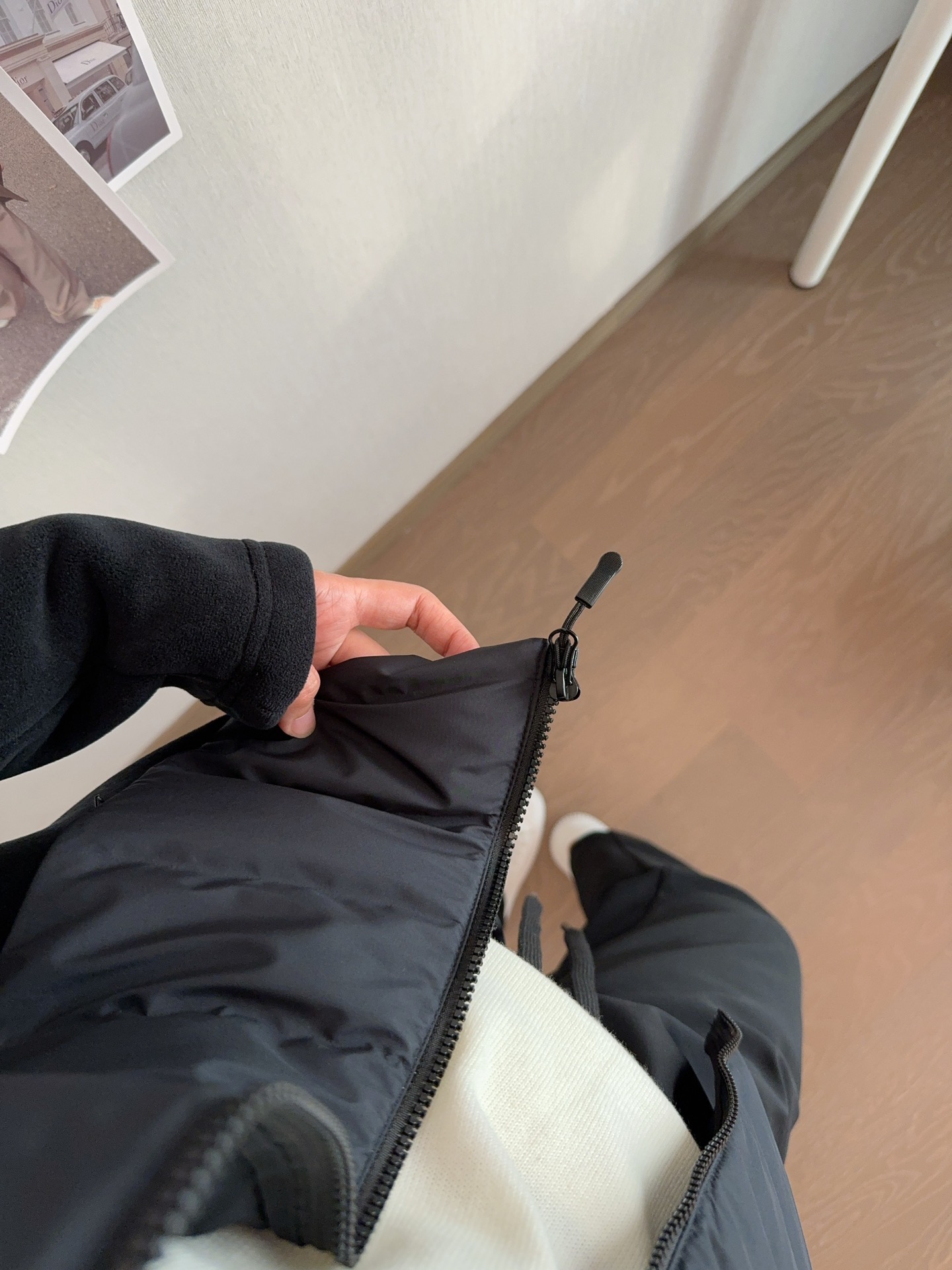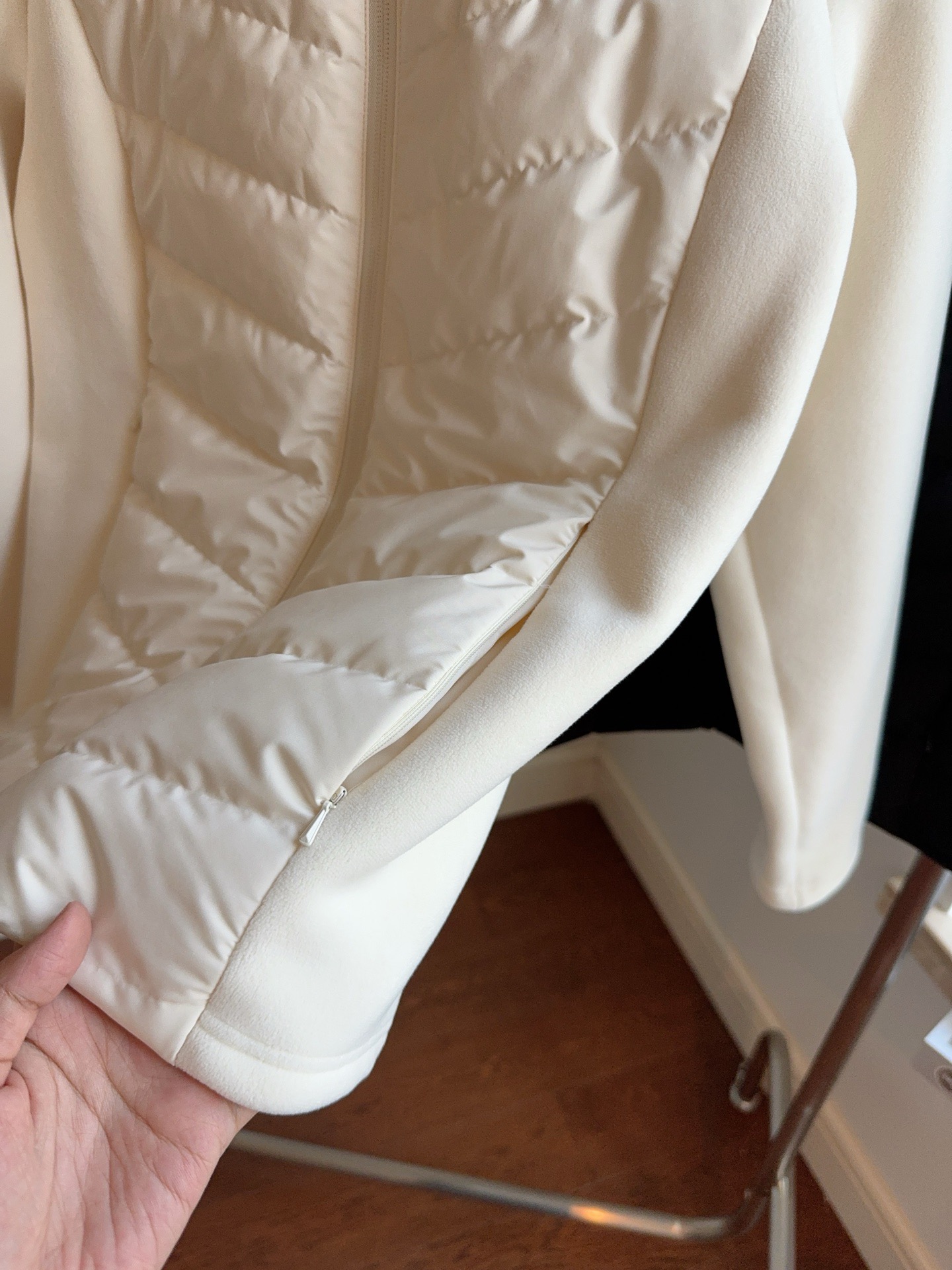 前片拼接是90%绒子含量的白鸭绒,冬日护体决佳。