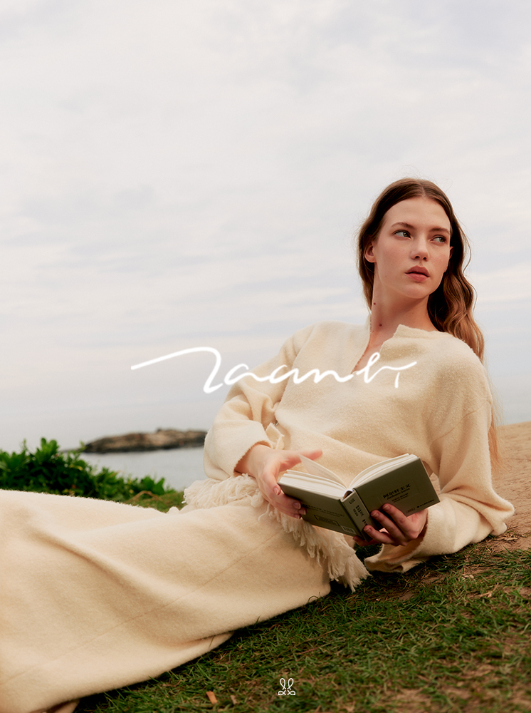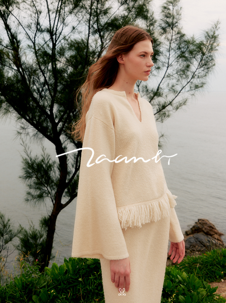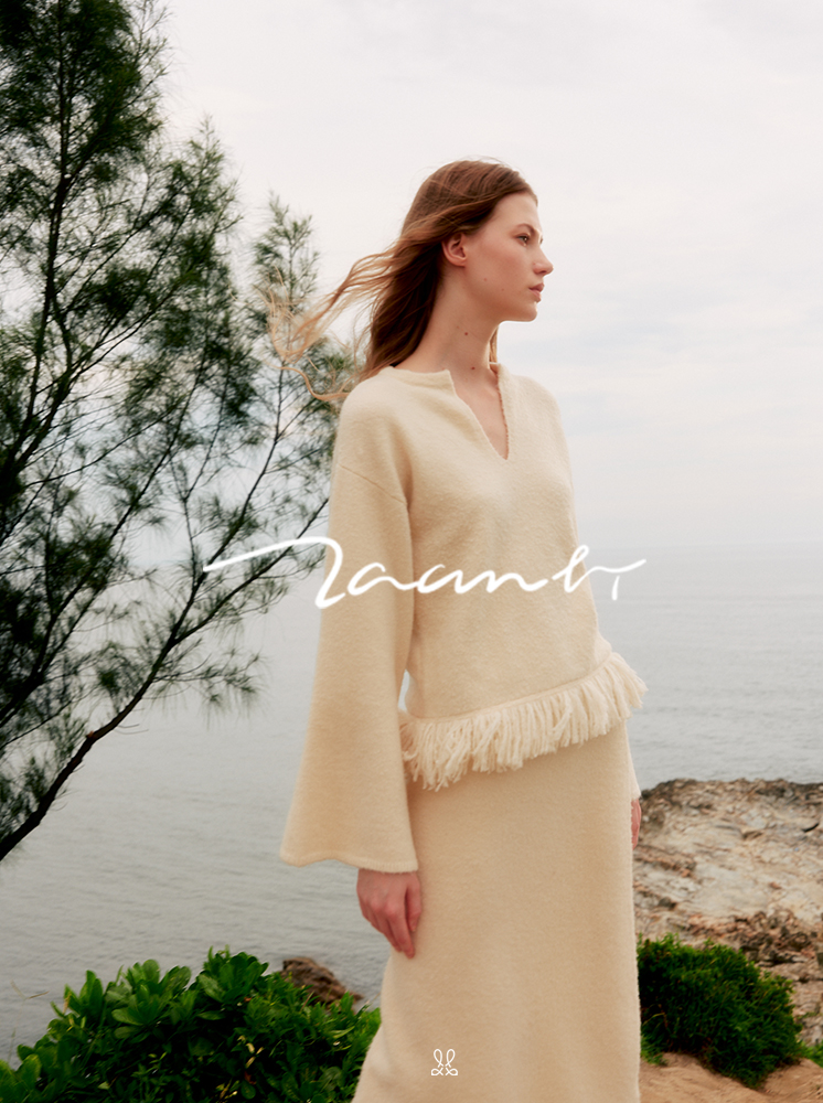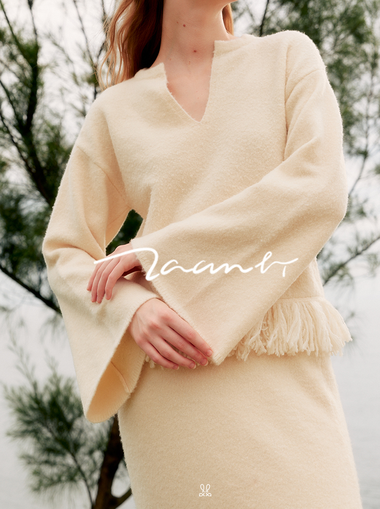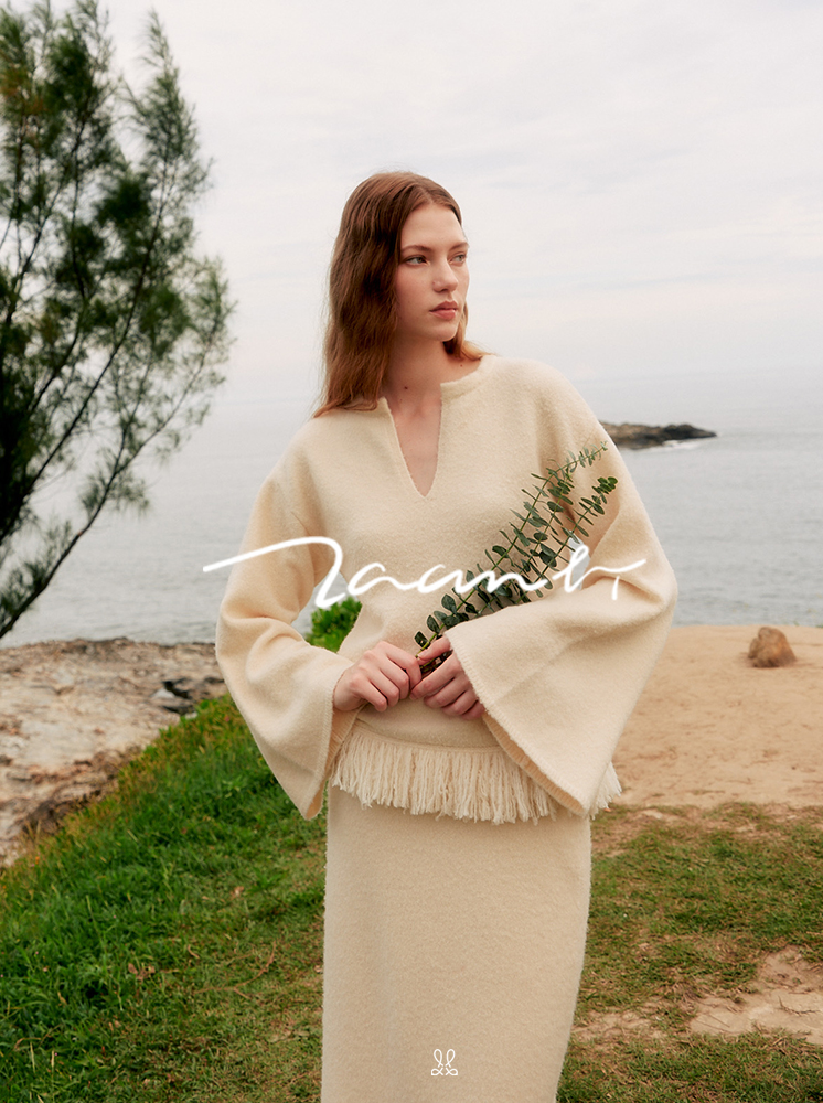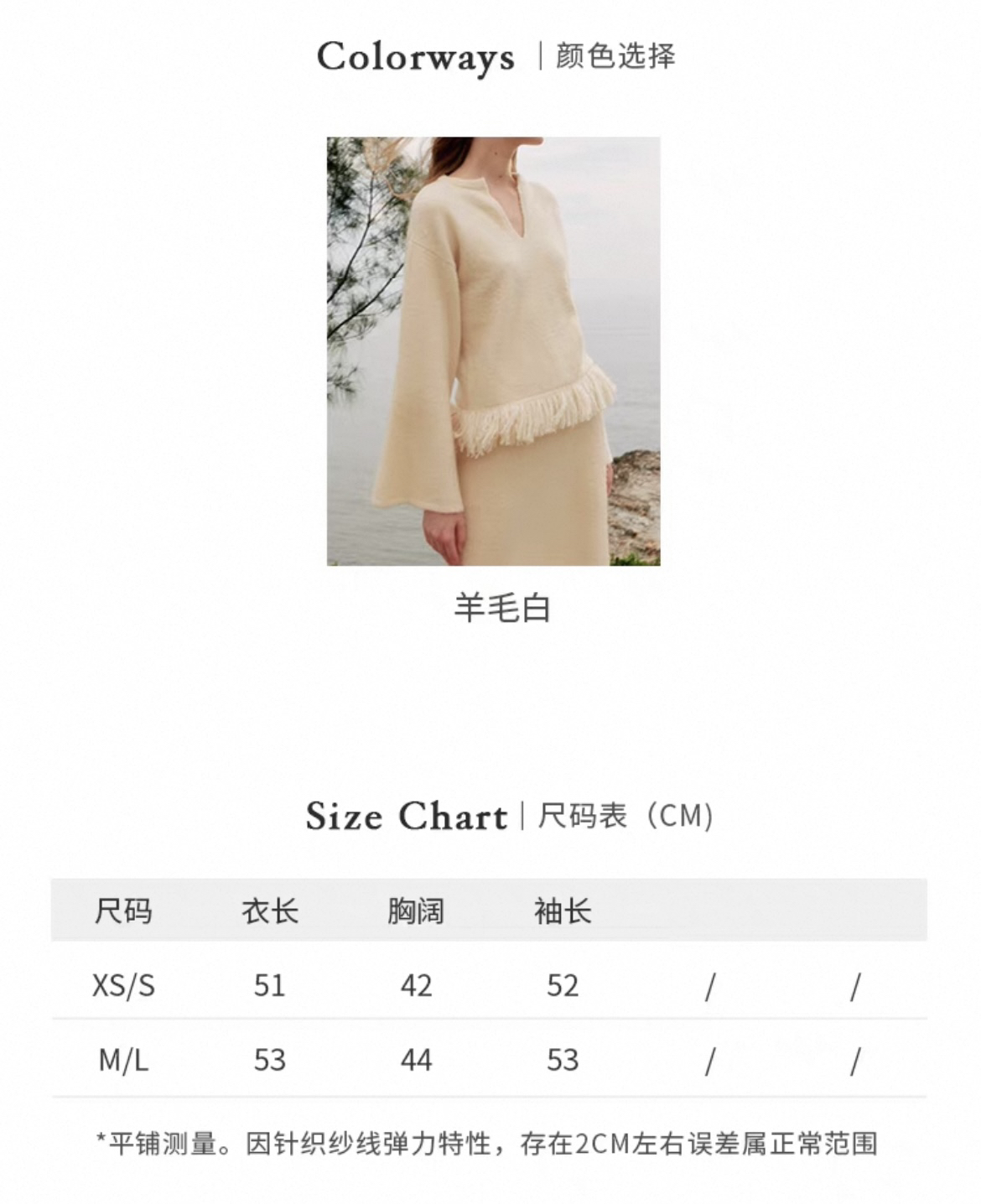 ZAANLI|ZN10019 羊毛白 羽毛感羊毛花式纱流苏喇叭袖针织上衣