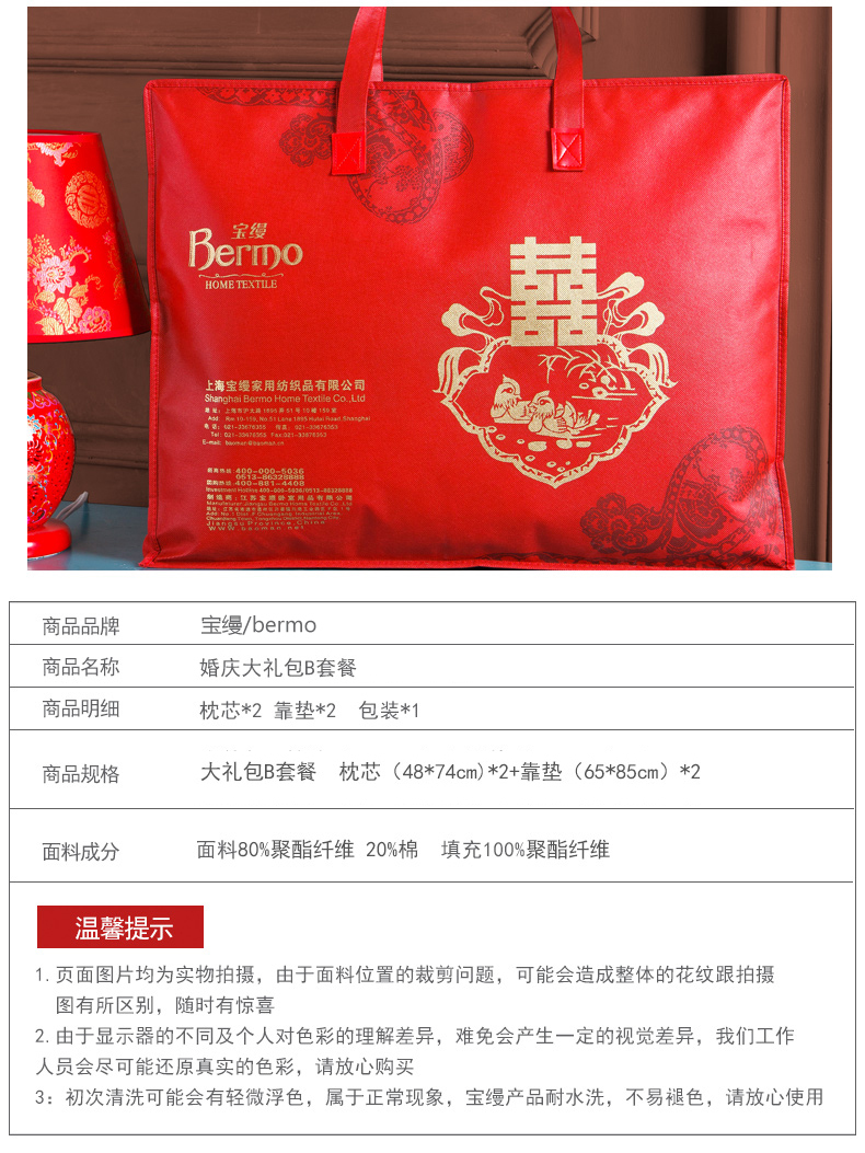 10楼宝缦 婚庆大礼包B套餐 枕芯48*74cm*2 靠垫65*85cm*2 吊牌价830元 活动价399/套