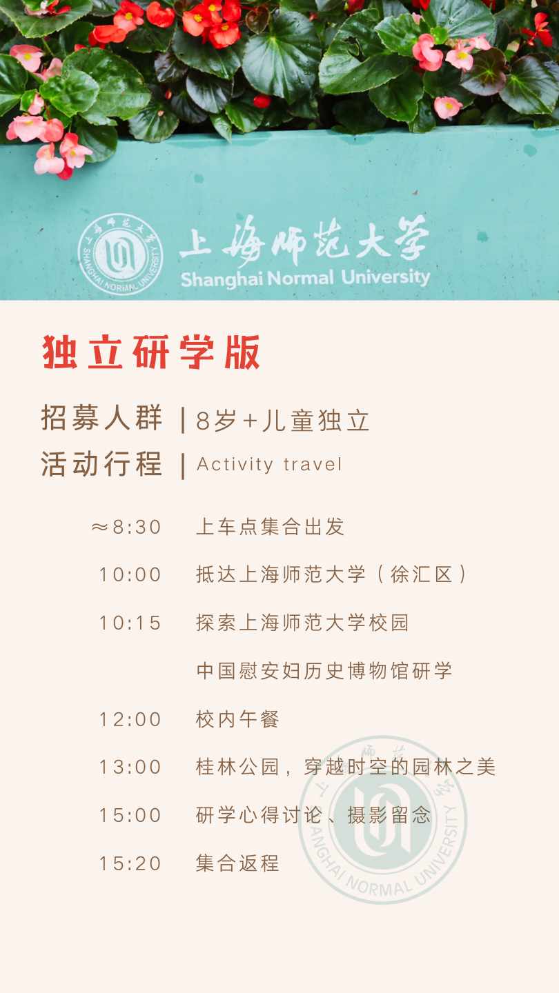 孩子志·名校游学 独立营 | 上海师范大学+桂林公园 8岁+儿童独立,领队1:6全程陪护,11、12月【会员价】感受名校气息、体验名校氛围、树立学习目标..
