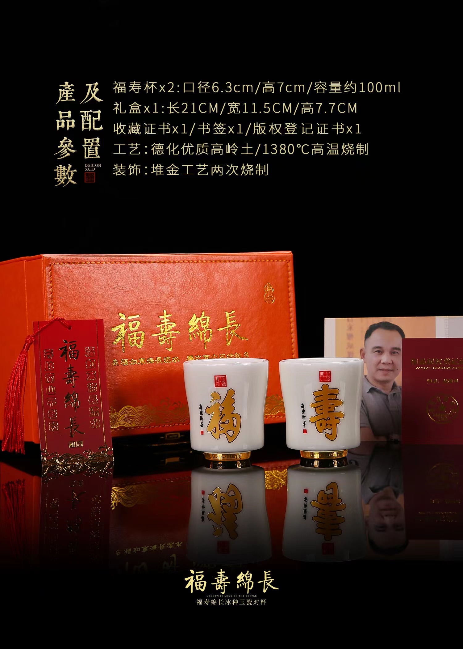 【帝王御笔 福寿双全】福寿绵长对杯/对瓶,笔墨堆金 福寿献瑞,作者签章 品质保证,福寿安康 精美好礼