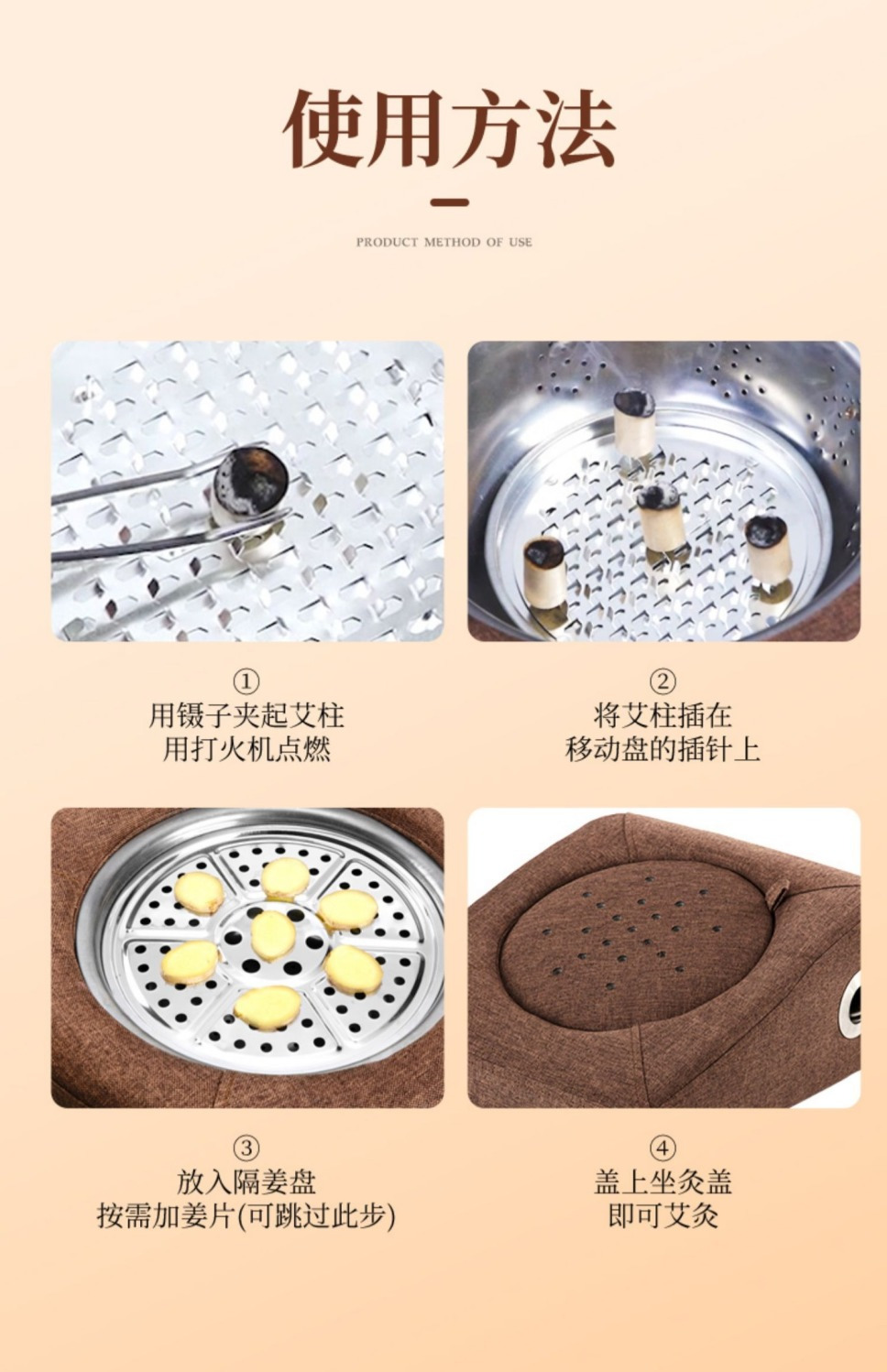 斜坡蒲团艾灸盒后背膝盖随身灸背部家用便携式颈椎腰艾盒