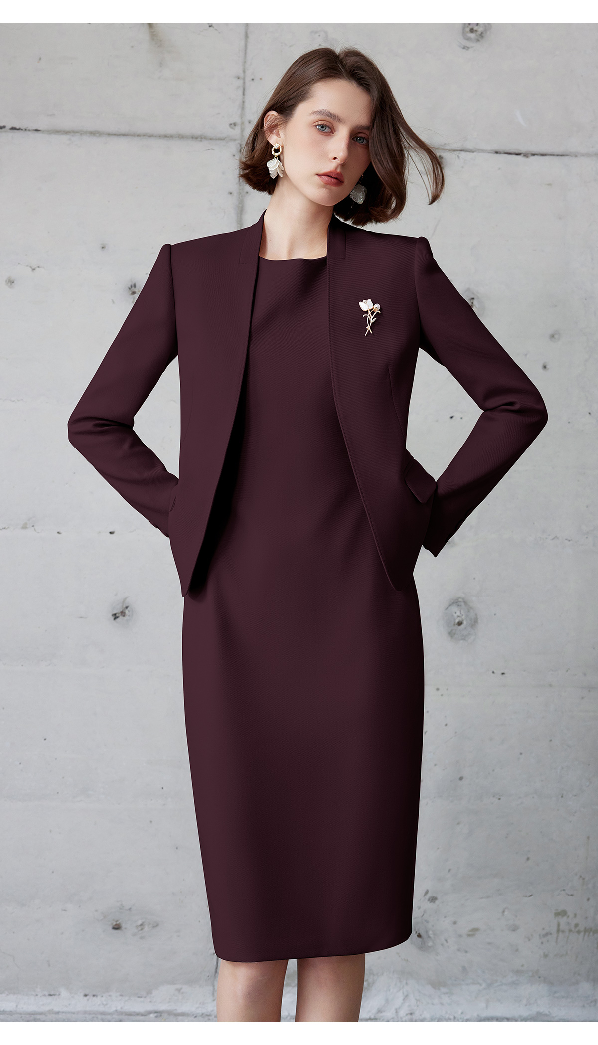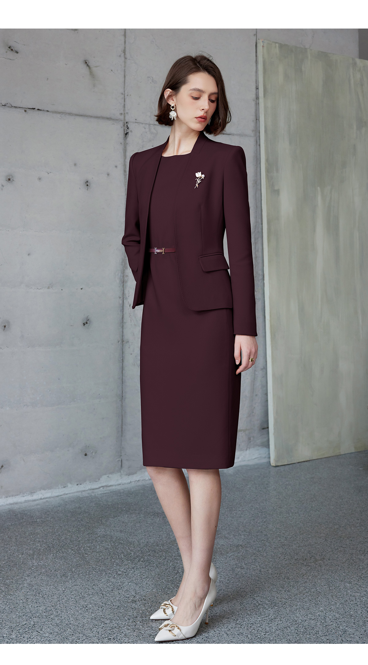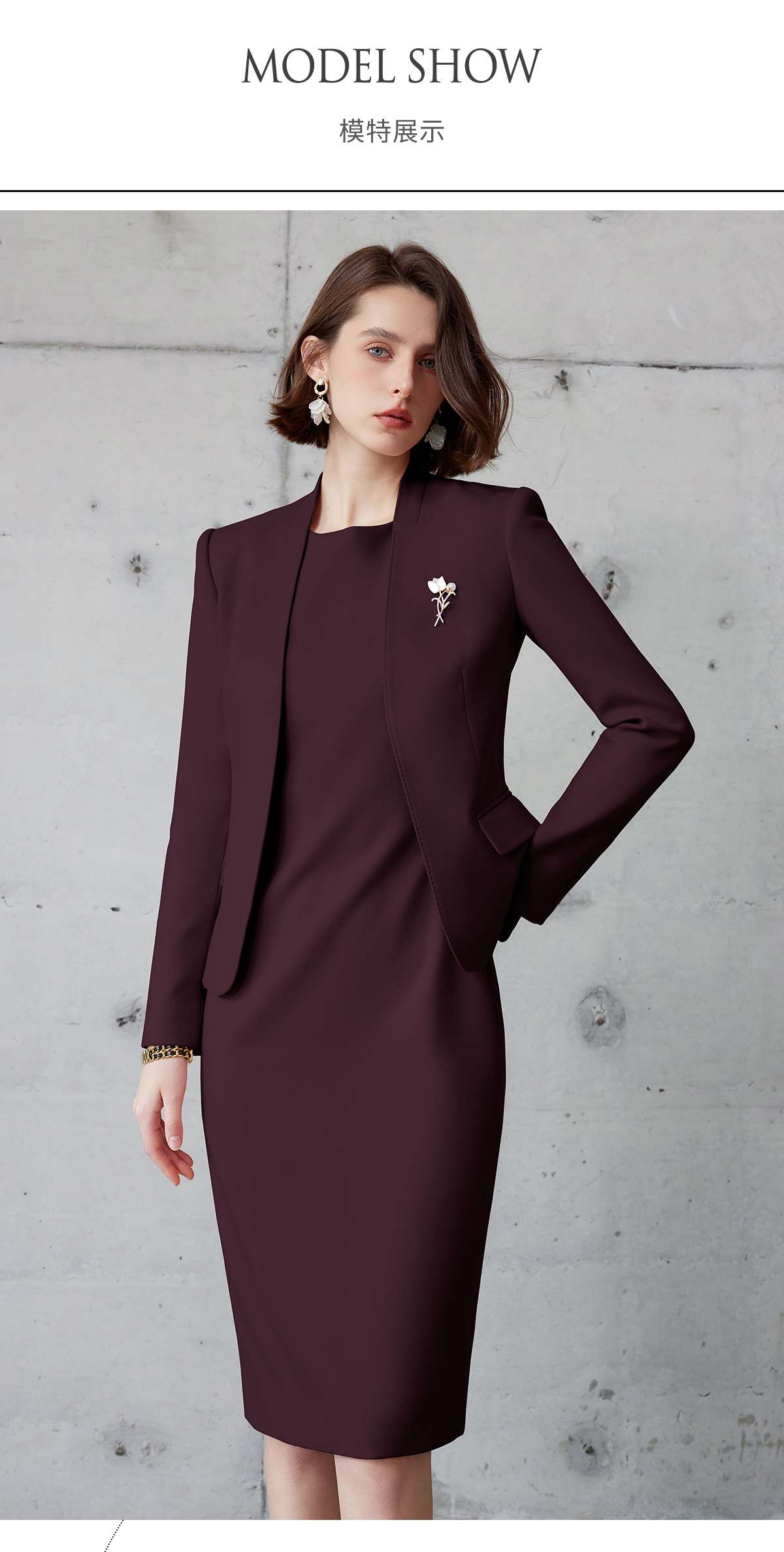 AD安可拉红色西装连衣裙两件套女士职业装2024新款公务员工作服秋
