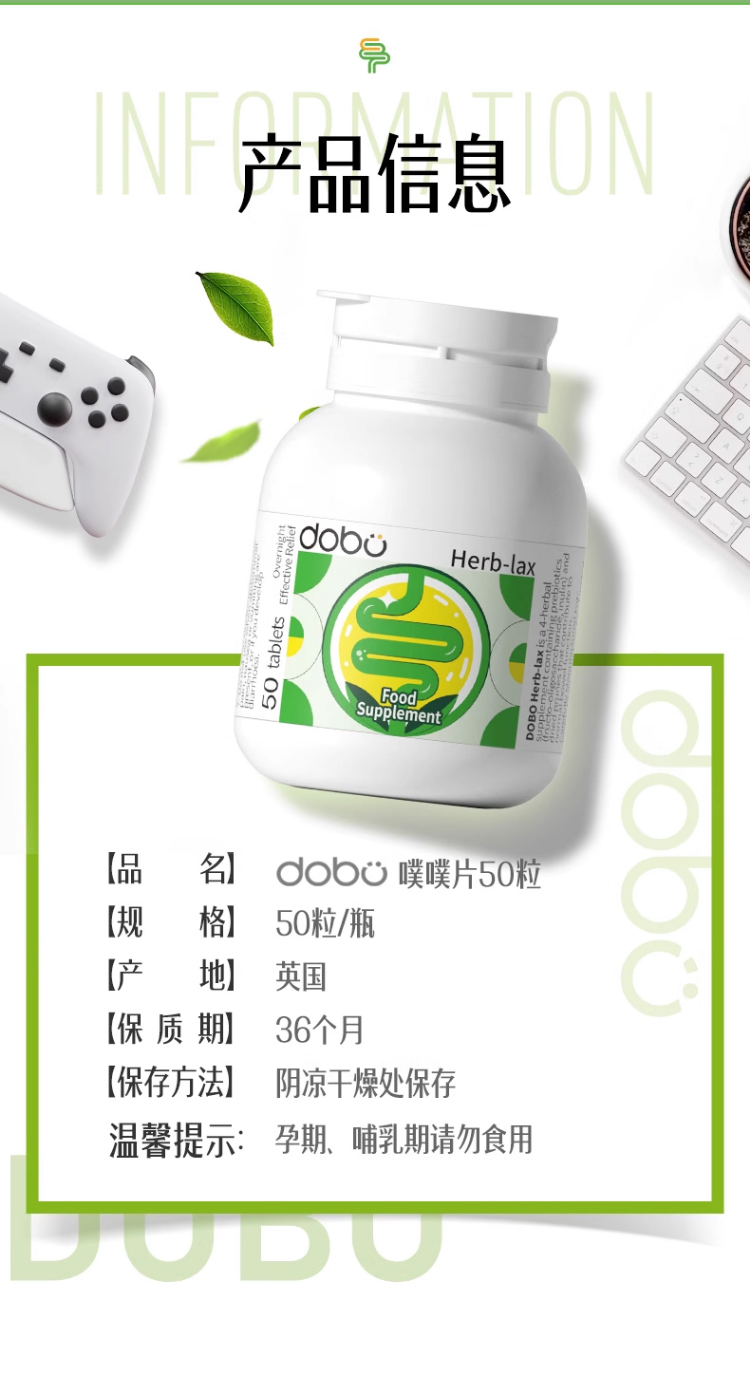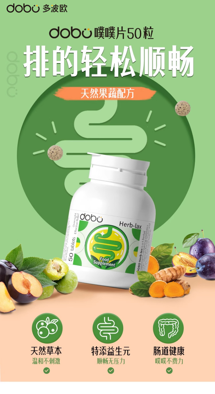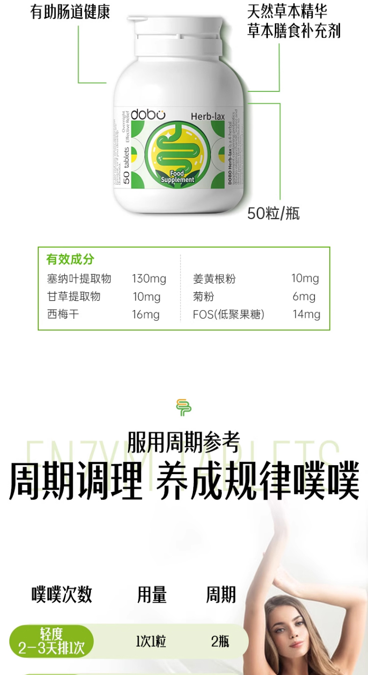 【保税直发】原装进口DOBO噗噗片天然草本膳食纤维素酵素噗噗清肠片50粒/瓶