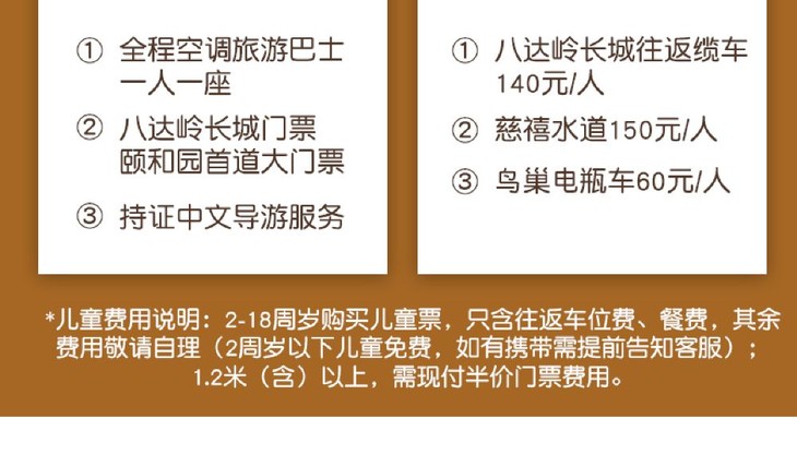 北京八达岭长城+颐和园+清华大学+鸟巢水立方外景一日游