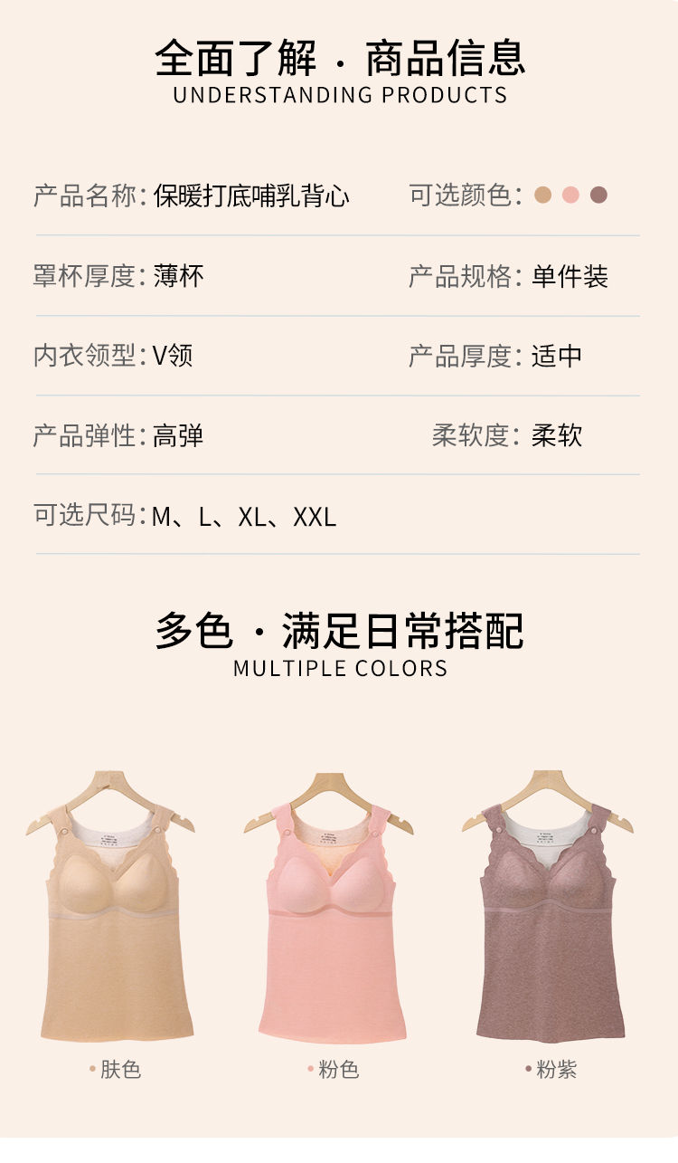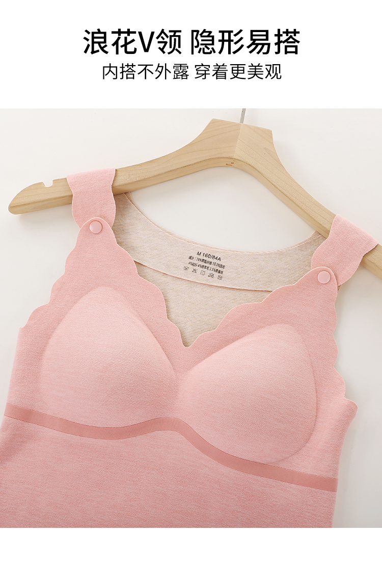 雅黛丽哺乳保暖背心带胸垫女双面磨毛打底上衣免穿文胸打底衫内穿