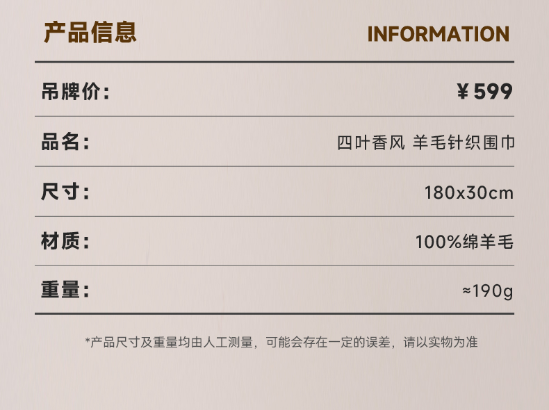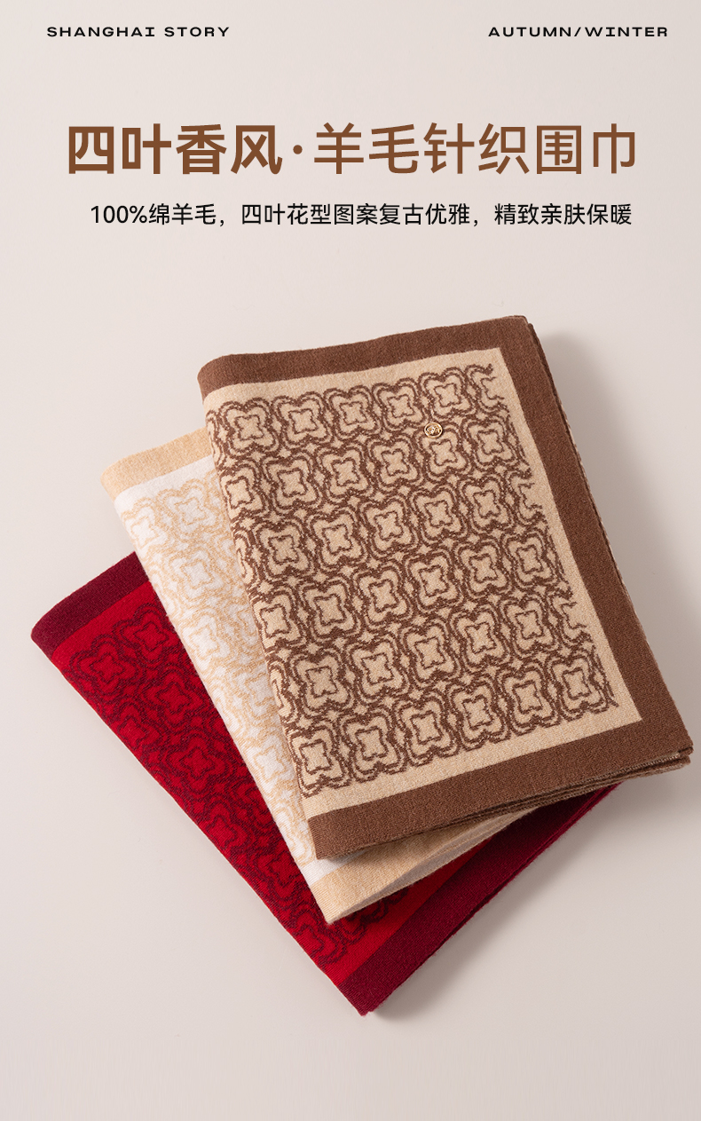 四叶香风 羊毛针织围巾