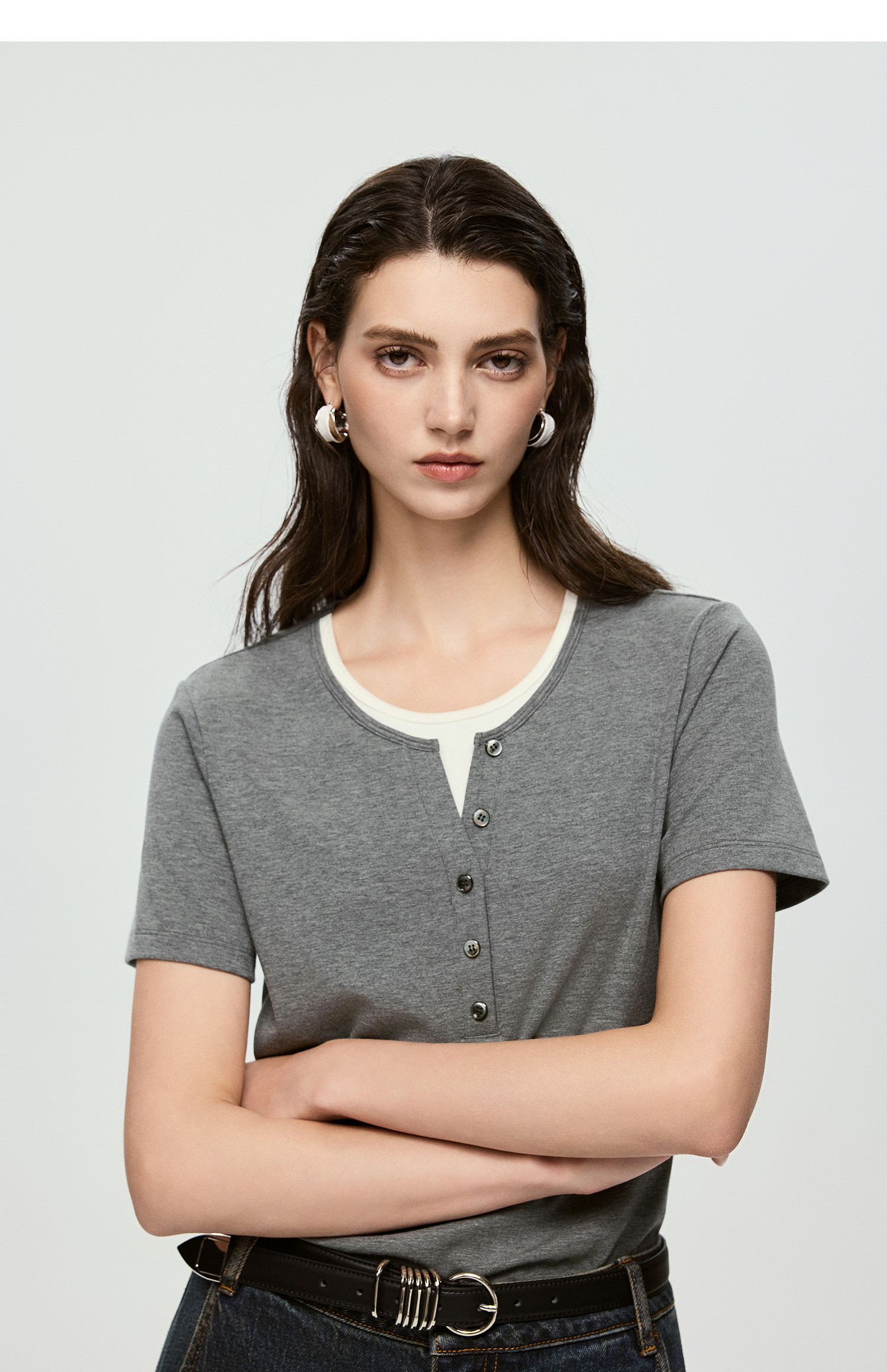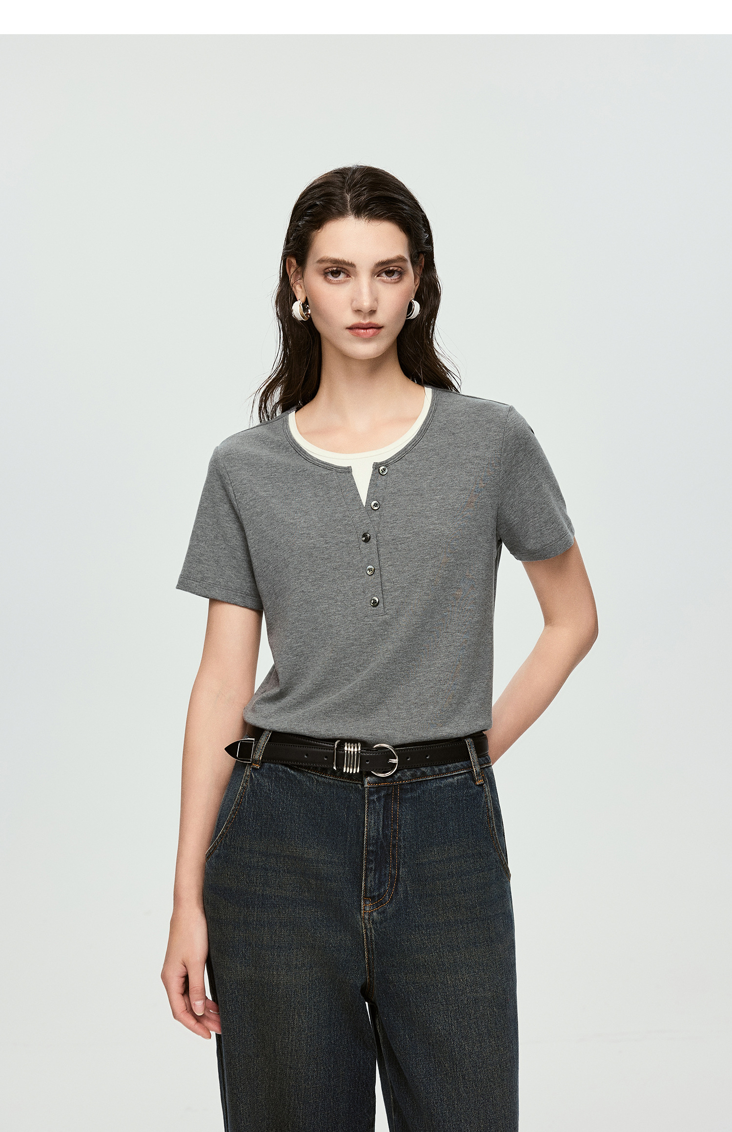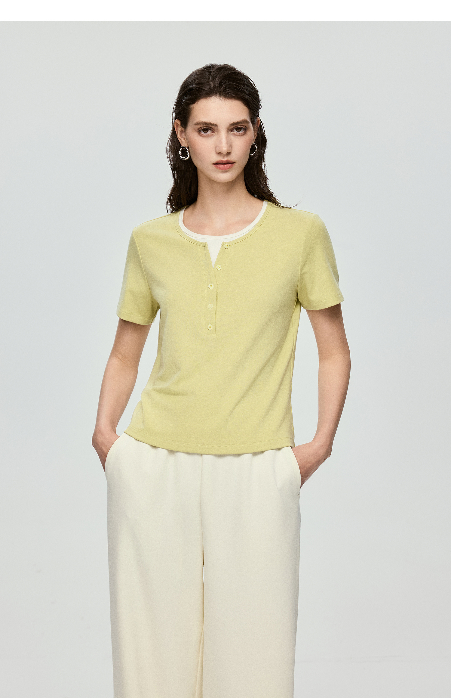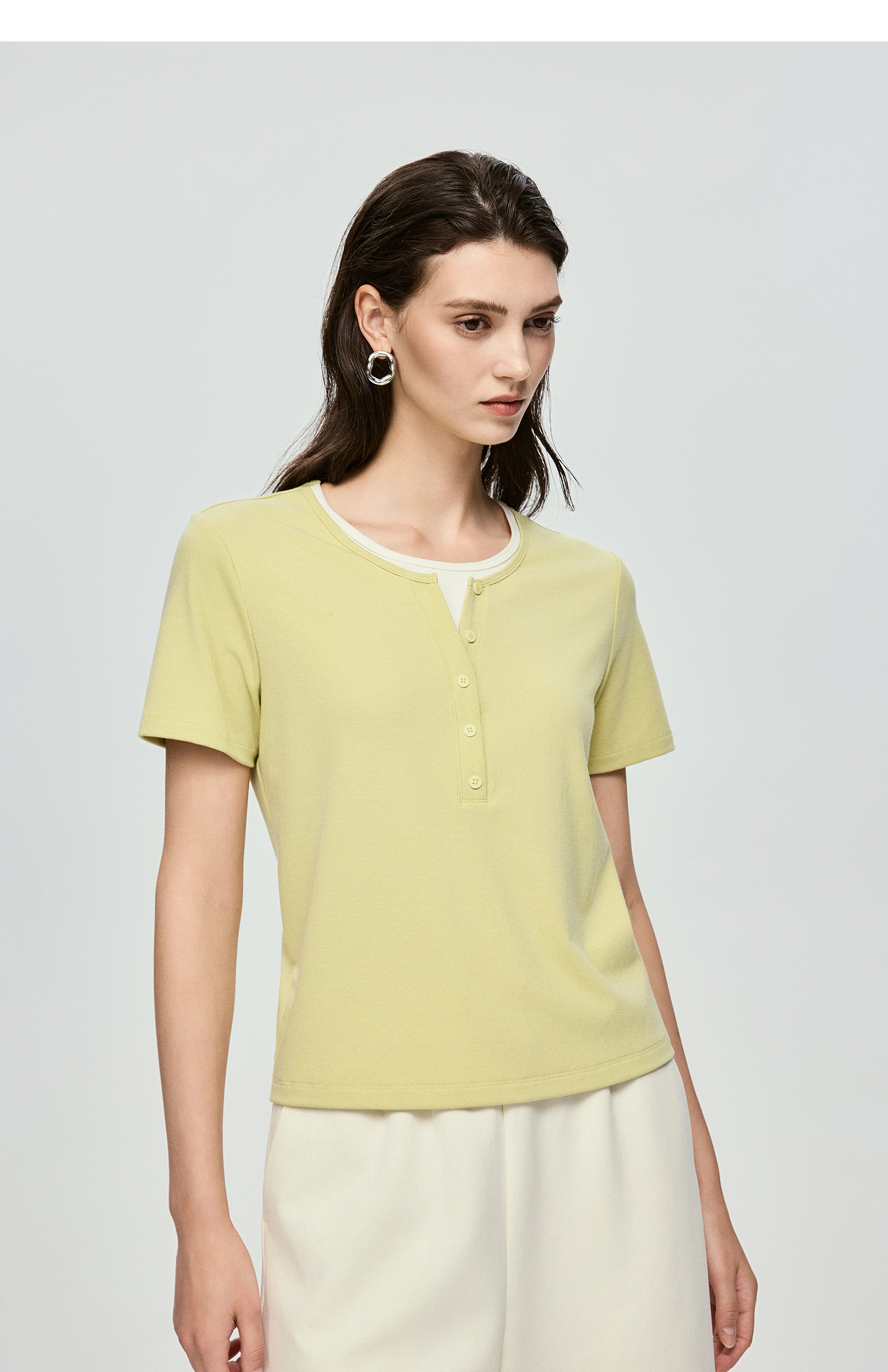 棉仓363601071-初棉肌底罗纹假两件T恤