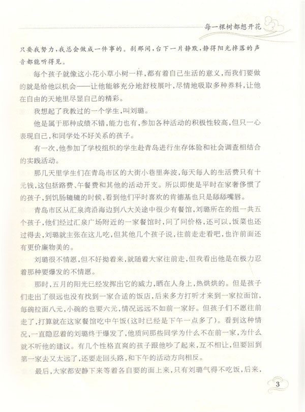 本书共由五辑构成:第一辑《追寻逝去的传统》(6篇),通过走进中外教育史上的一些名家的教育经历、人生经历,从而继承教育的传统;第二辑《让我们的脚下开满鲜花》(10篇),是作者通过记叙教育中的一些事例、现象,阐发对教育的认识;第三辑《咬口苹果来上课》(9篇),主要记叙作者对语文教学的理解和感悟;第四辑《书籍是我最早的故乡》(5篇),主要结合作者的阅读经历和感悟,阐述阅读对一个教师成长的作用;第五辑《书写读写人生》(6篇),记叙了作者作为教师的成长经历。整部书体现了作者对教育的实践、理解和思考,叙事和思辨相结合,既具有叙事的生动性又有思考的深刻性,同时还有对教育人生的体验和认识。