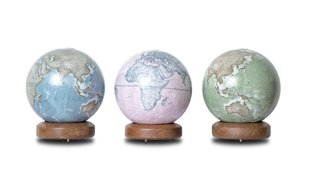 25CM*29.5CM(H)球体球胆为树脂材质,球面为国标中文2016版地形/政区地图,我们通过对图纸的精确测量、手工剪裁、黏贴、绘制等一系列工序,将每一片图纸完美的贴合在球体上。基座精选实木整料不拼接,经手工打磨后使用食品级植物油蜡进行表面处理,既还原了木质原本的自然质感,又比传统的喷漆工艺更加环保。