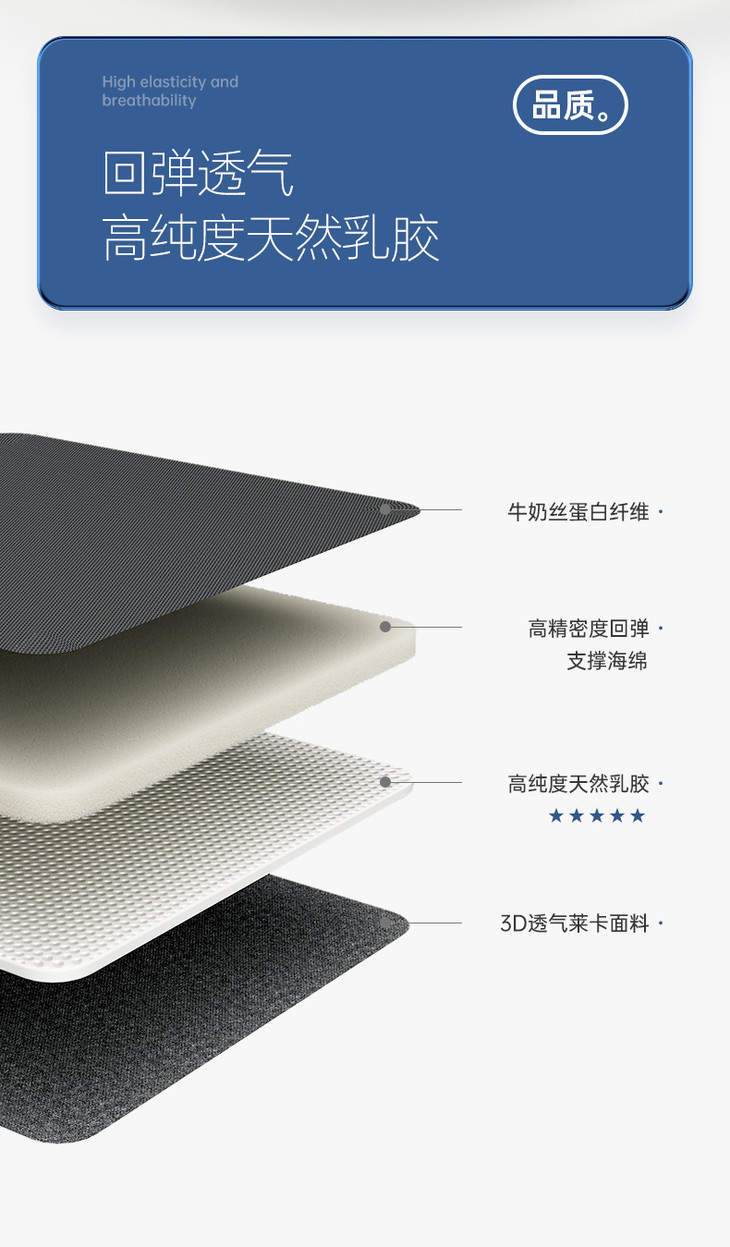 颈部固定器用料讲究,四层材质360度温柔包裹颈部。表层是3D透气莱卡面料+牛奶丝蛋白纤维,柔软细腻轻盈透气,久戴不闷热。内里填充高精密度回弹支撑海绵,饱满有弹性,支撑力强不易塌陷。最厉害的是含SSG认证高纯度天然乳胶层,0合成乳胶、0丁苯橡胶、0滑石粉,健康环保超舒适!整体触感柔软又有支撑力,不像传统颈托生硬"锁死"脖子,而是温柔包裹,透气性佳,夏季佩戴不闷汗!而且仅重85g,比一包抽纸还轻,佩戴零负担!