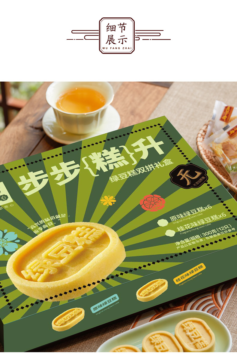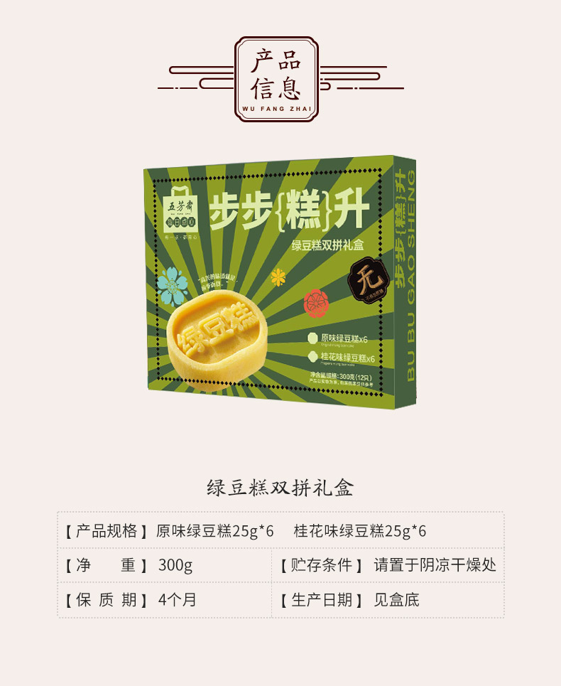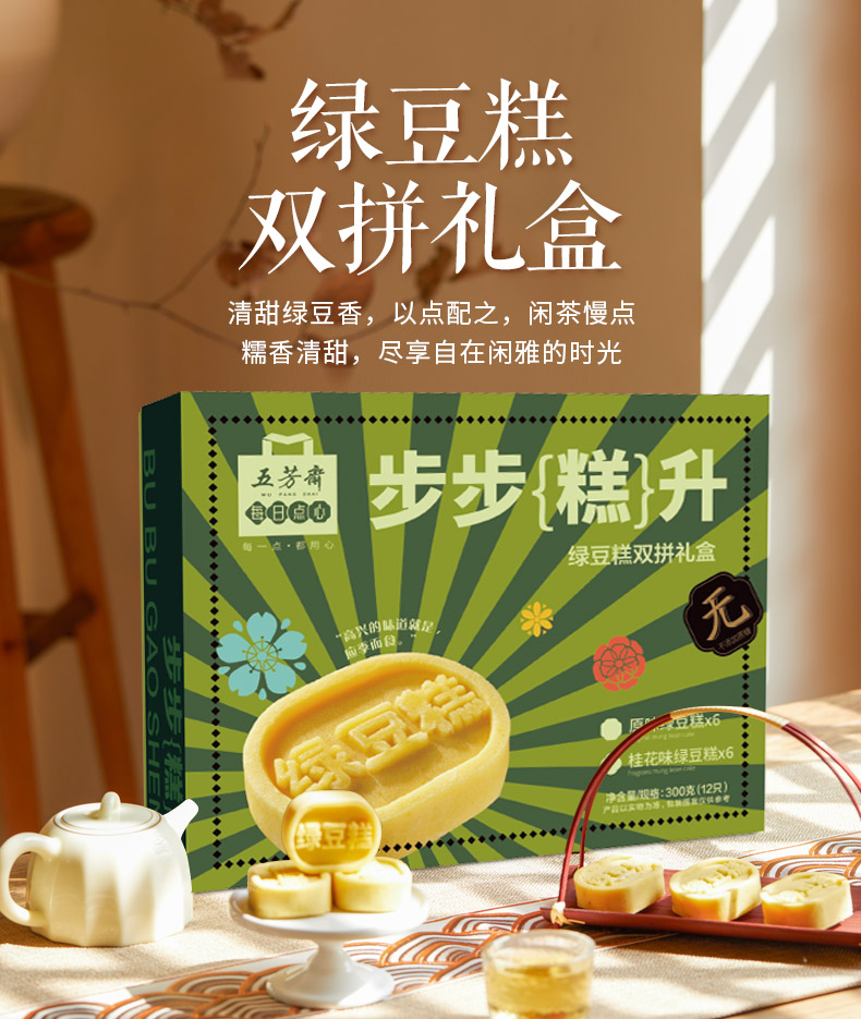 五芳斋 绿豆糕双拼礼盒 原味/桂花味 软糯香甜不腻口 中式糕点点心300克/盒