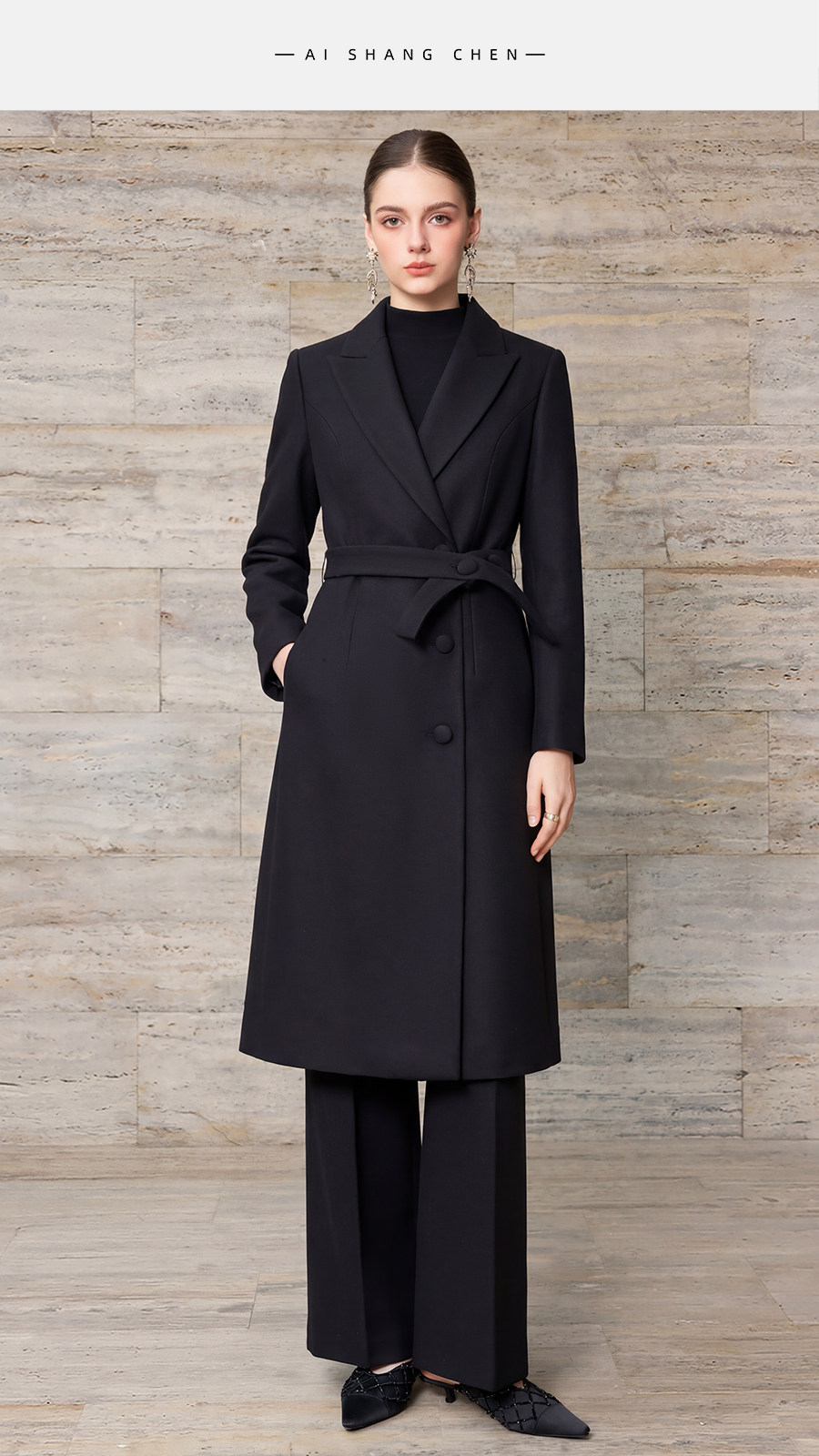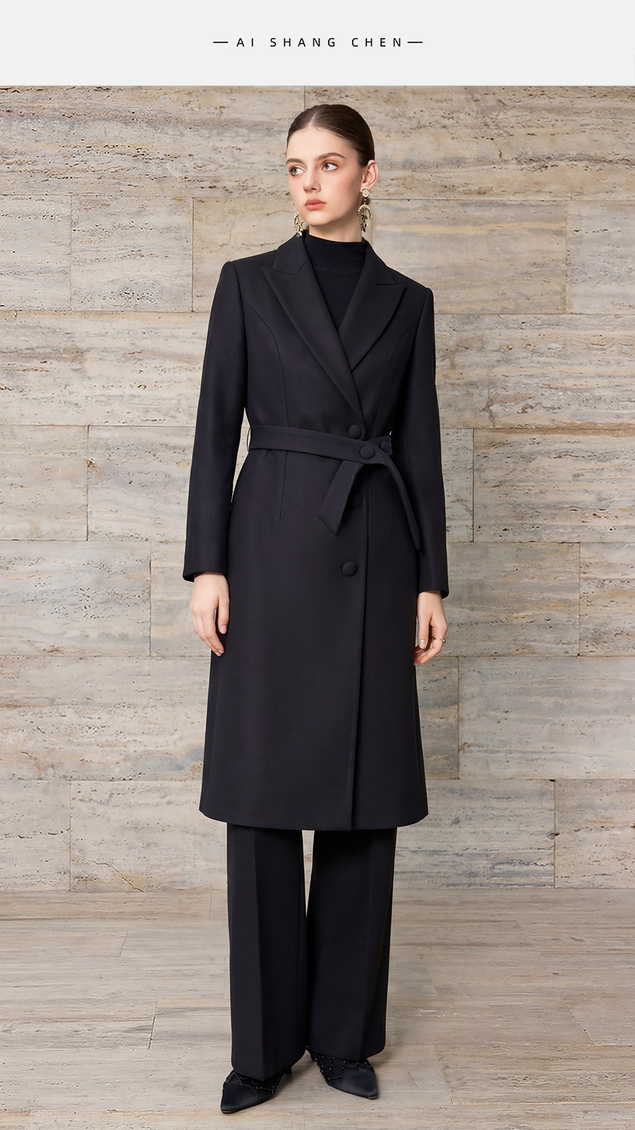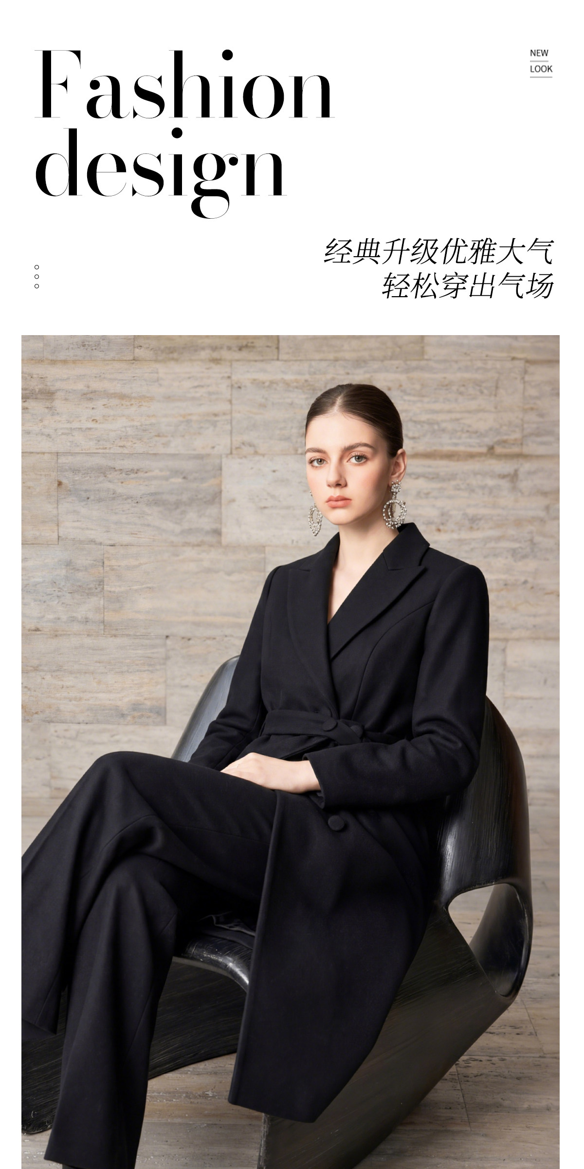 艾尚臣复古赫本风气质职业套装女羊毛呢西装大衣中长款收腰高级感