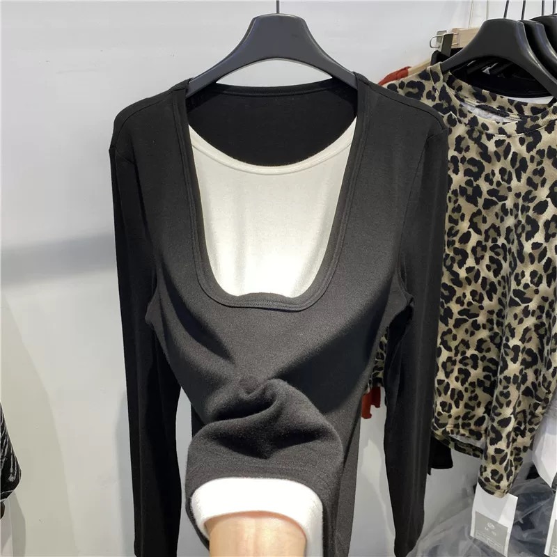 U领撞色假两件长袖衫 3521020015