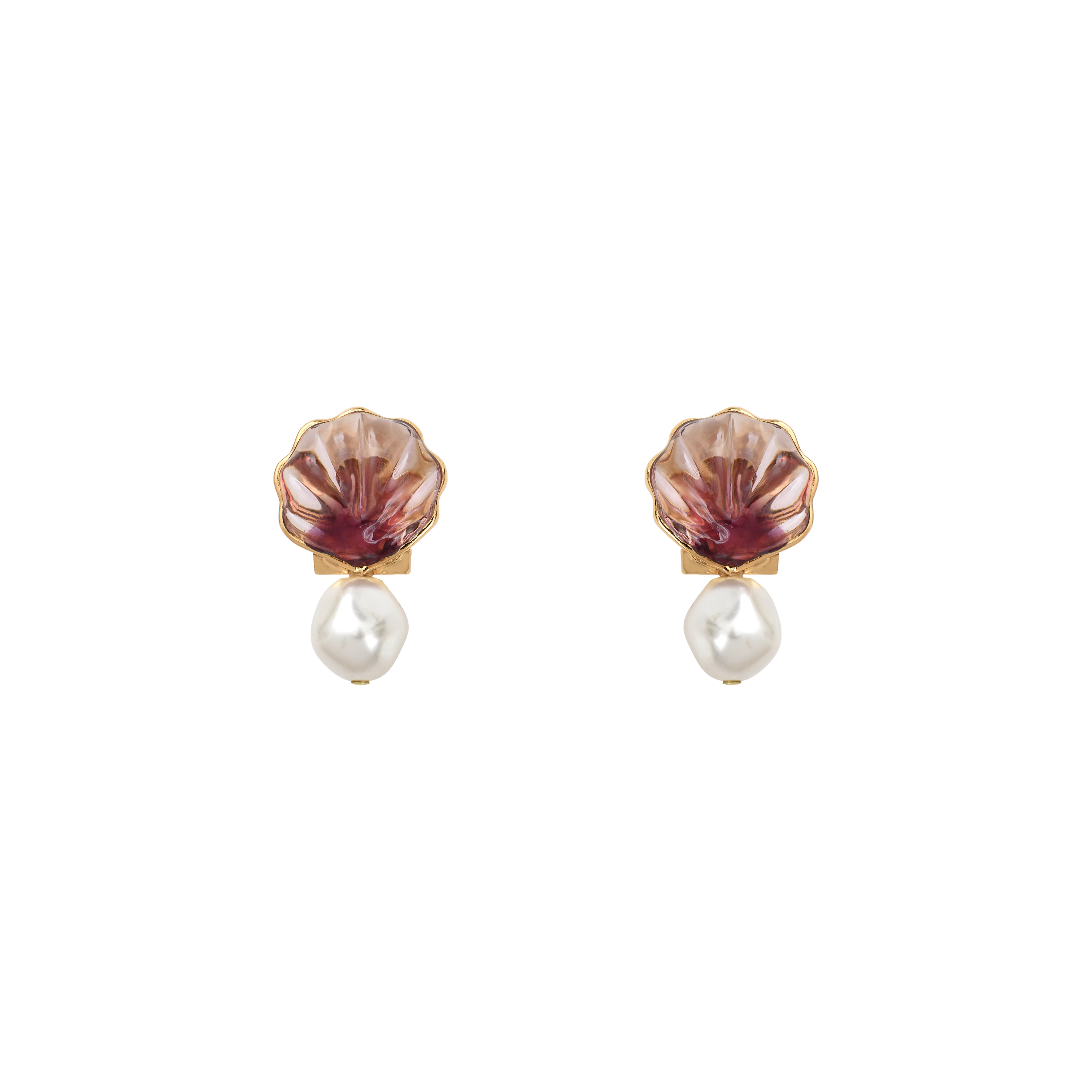 订购6个月到|Gripoix Paris-Sea Life Shell-粉紫色 贝壳琉璃 琉璃珍珠 耳夹(中号 无需耳洞)[法国设计师]