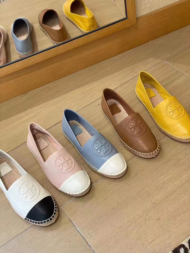 TORY HCRUB/TB新款女鞋小风香渔夫鞋一蹬脚乐福鞋草编拼色
