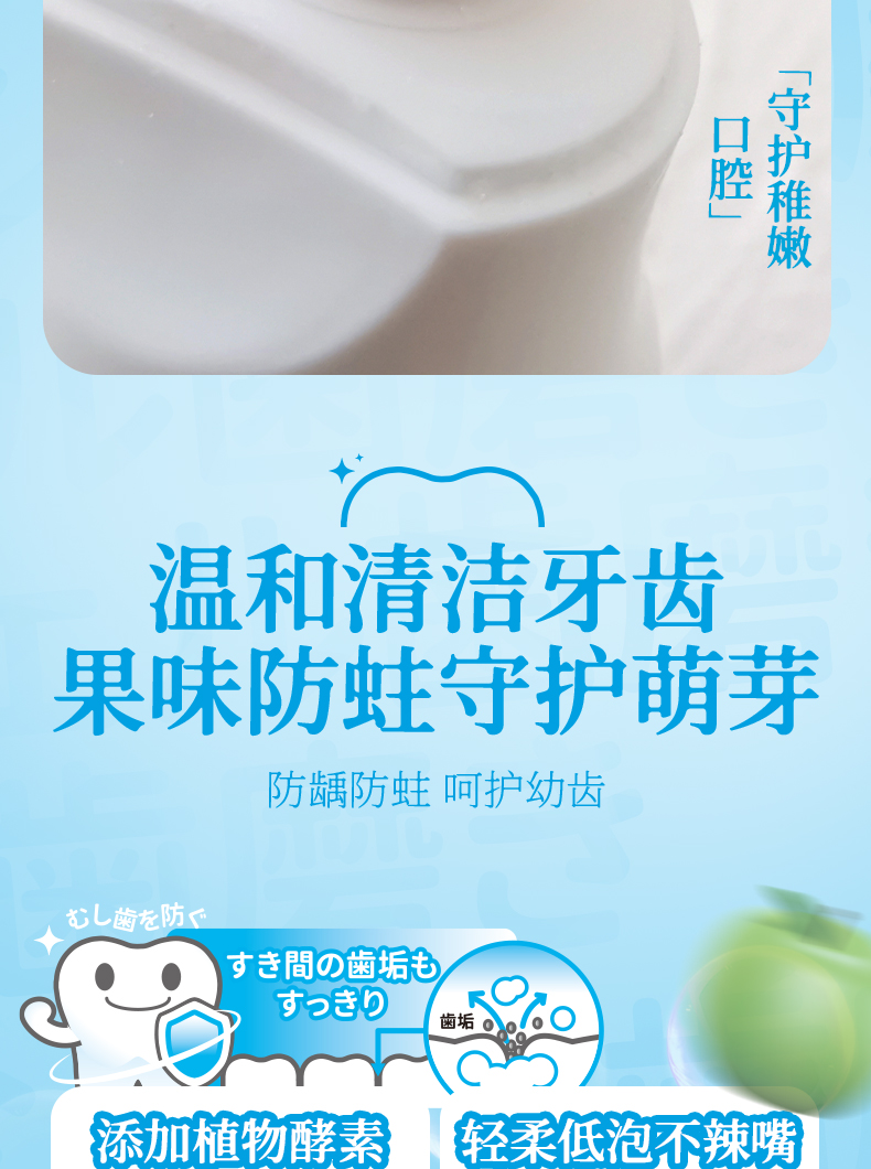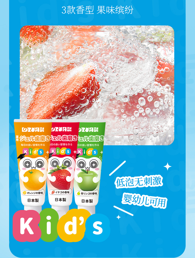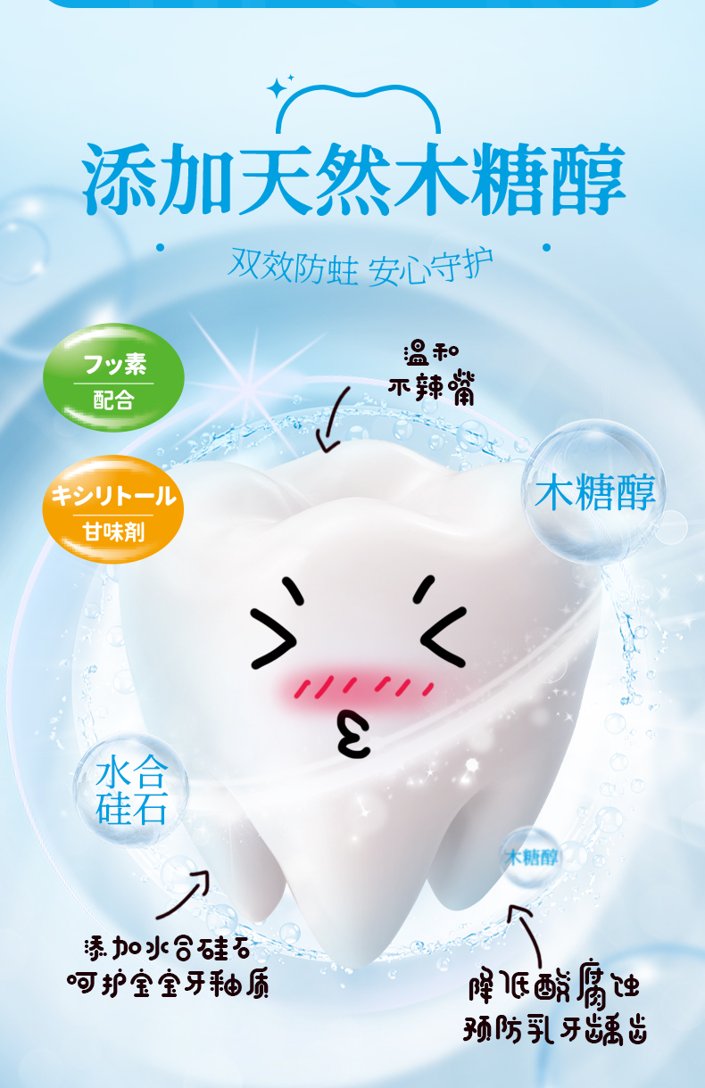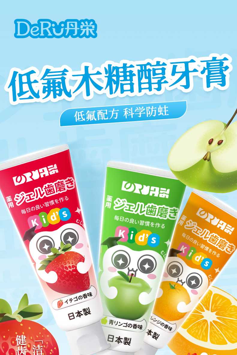 日本原装丹荣儿童牙膏婴幼儿童天然木糖醇含氟防蛀低泡水果味牙膏 50g/支