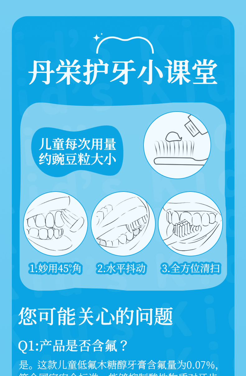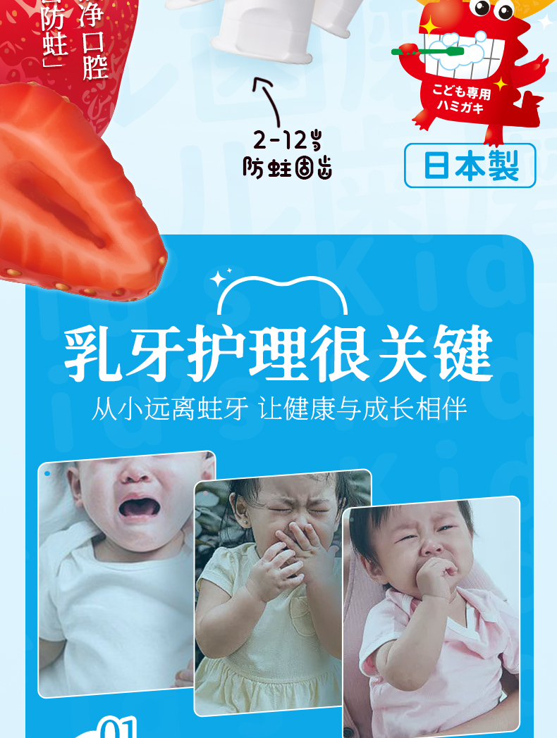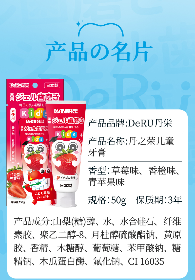 日本丹之荣儿童牙膏3到6岁到12岁含氟 换牙期可防蛀牙宝宝专用50g/支