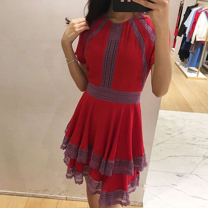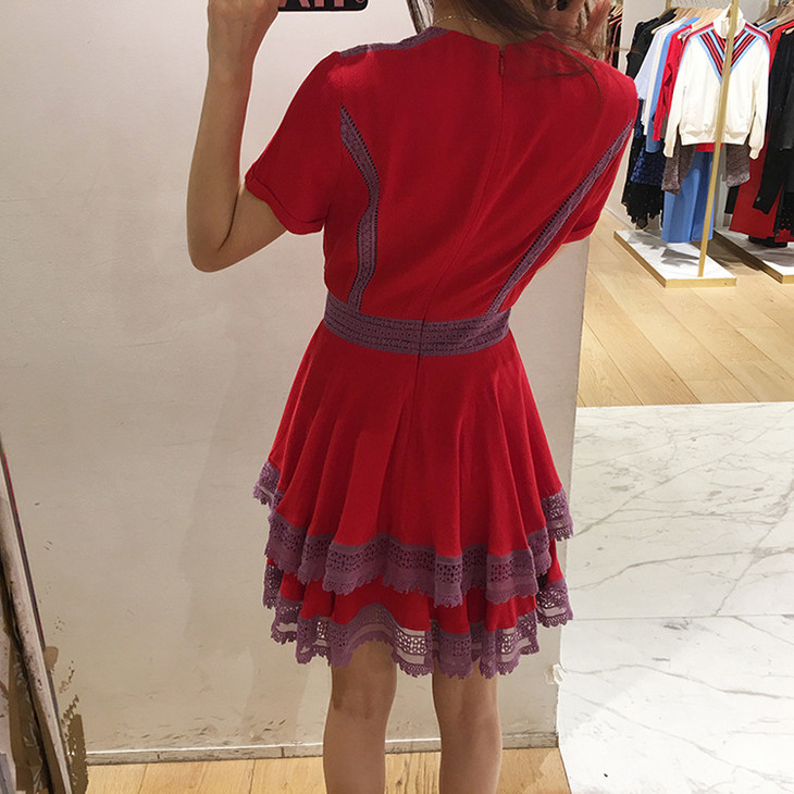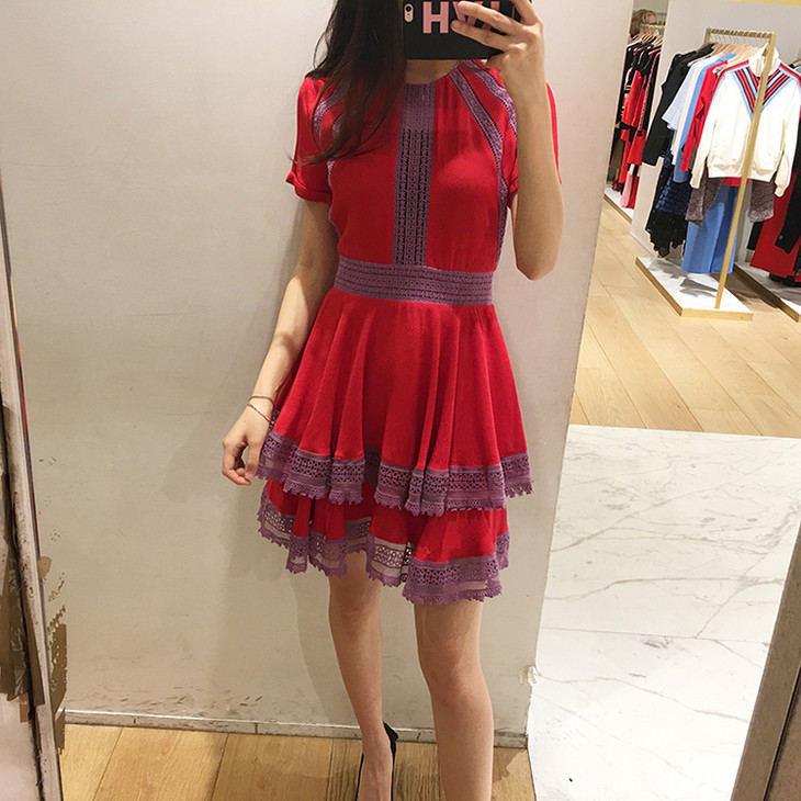 【服饰鞋包】 m蕾丝花边叠叠裙修身连衣裙中裙女
