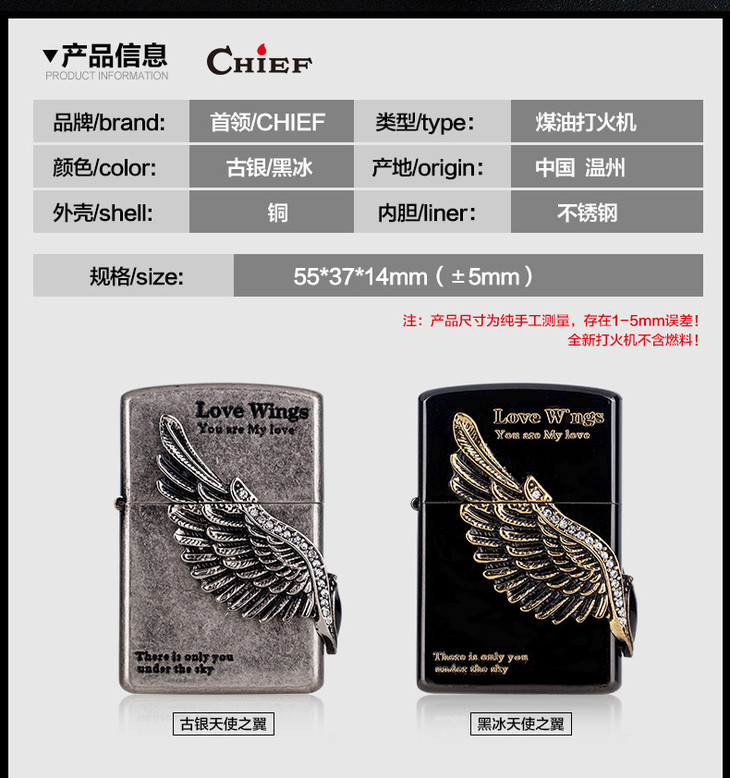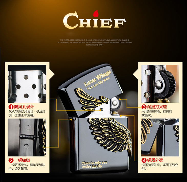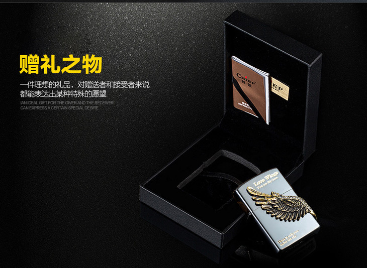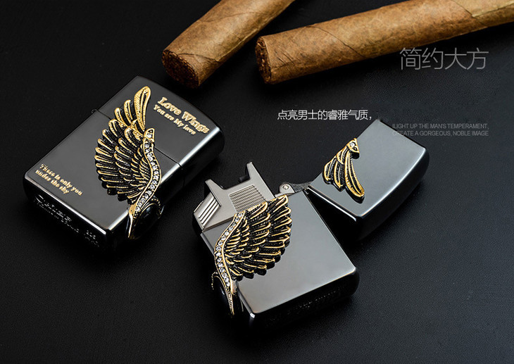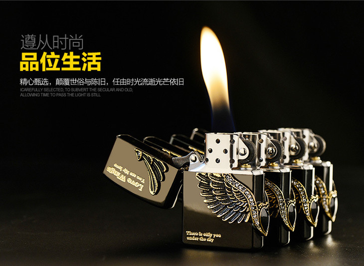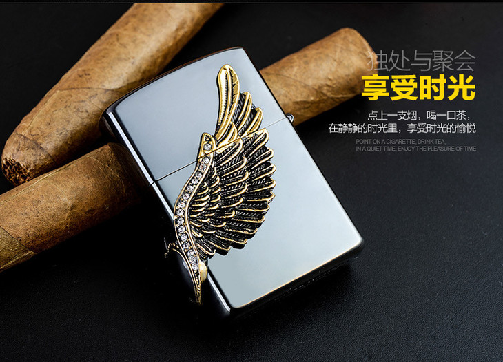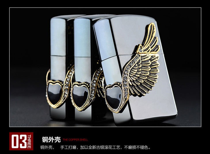 【打火机】防风天使之翼煤油打火机男士个性复古创意黄铜点烟器