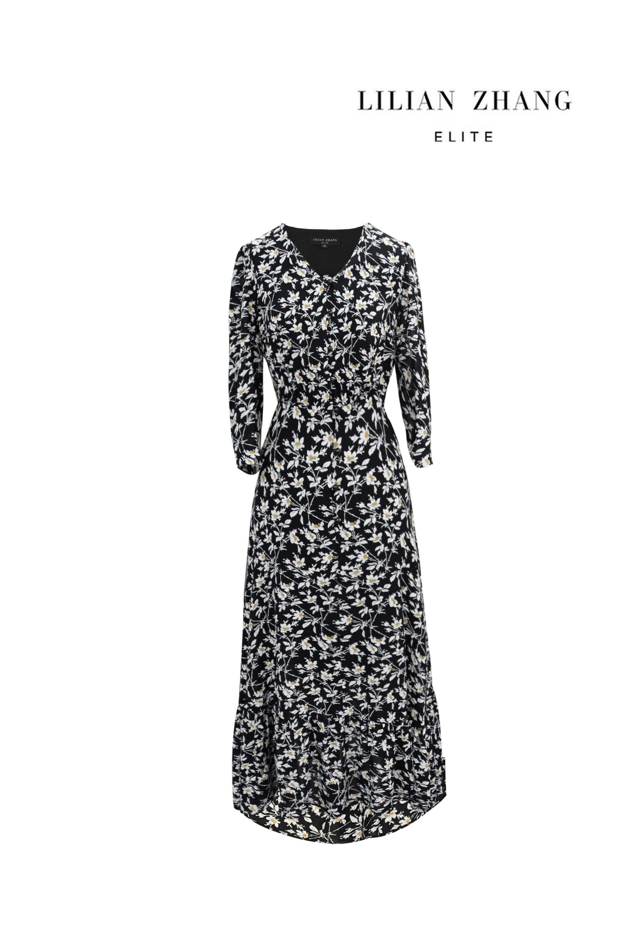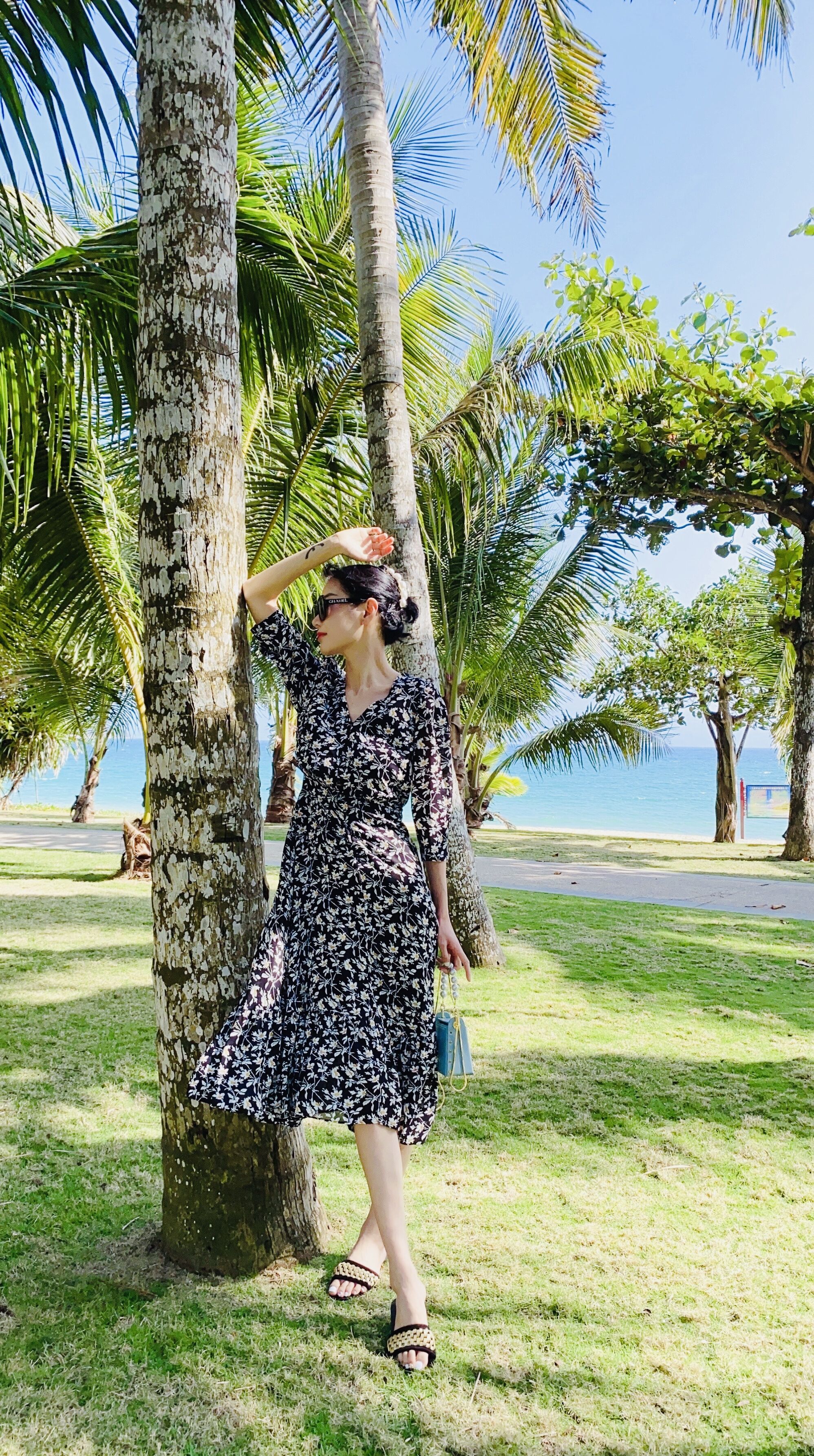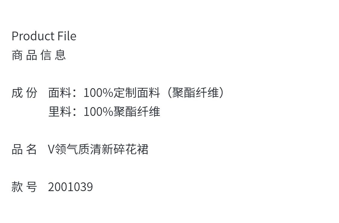 定制—法式V领气质—时尚清新碎花裙-度假风 印花连衣裙 2001039