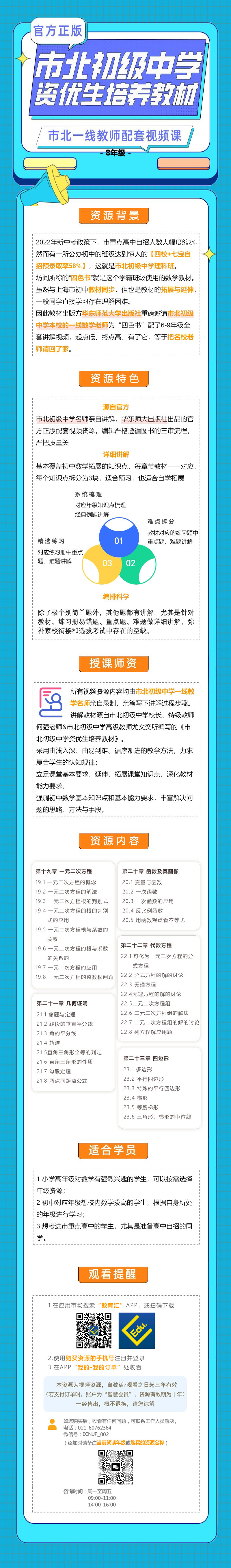【上海版】市北初级中学资优生培养教材 数学八年级 配套视频资源(不含图书)