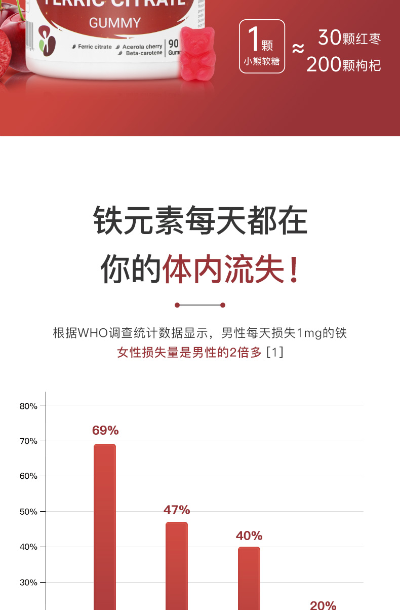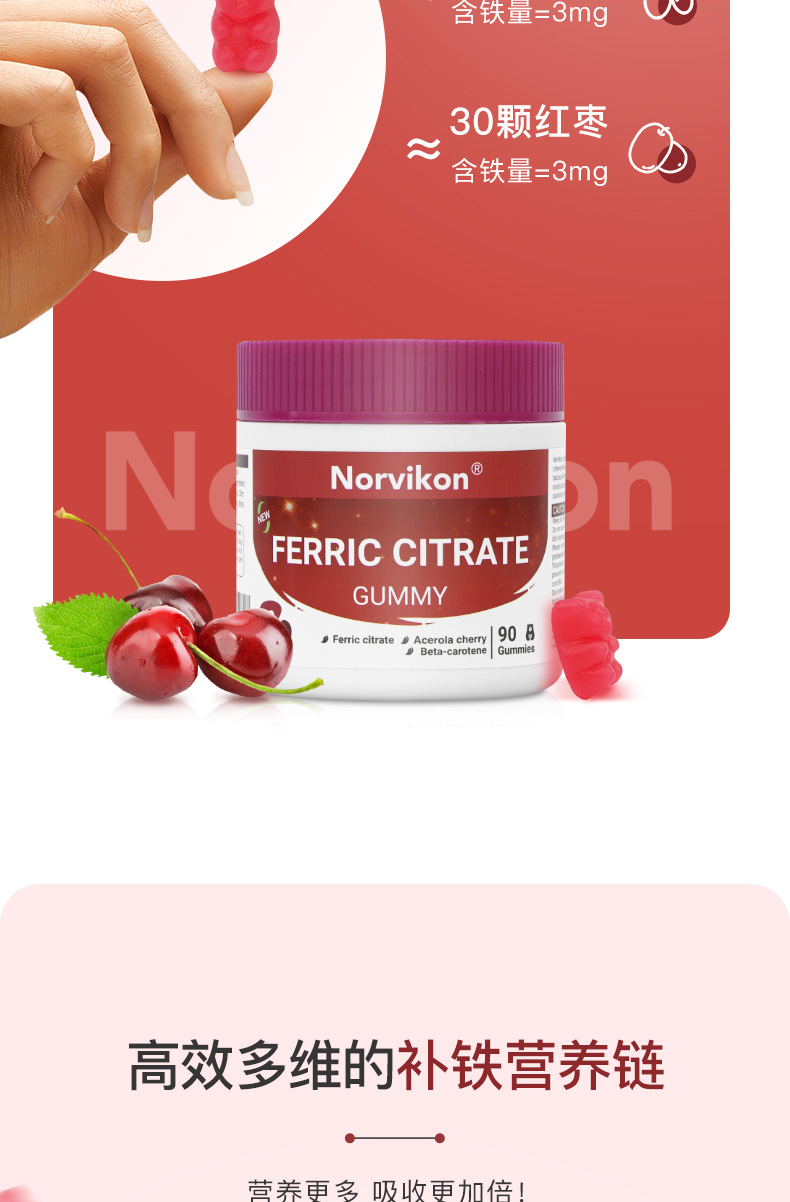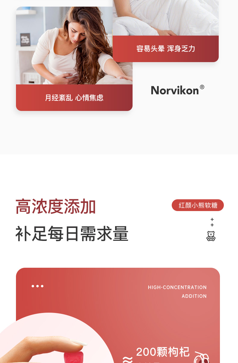 [屁侠推荐]诺维肯补铁软糖 专为女性打造的便携式气血充电宝 1颗=30颗红枣+200颗枸杞浓缩精华 针叶樱桃+进口黑糖复合配方